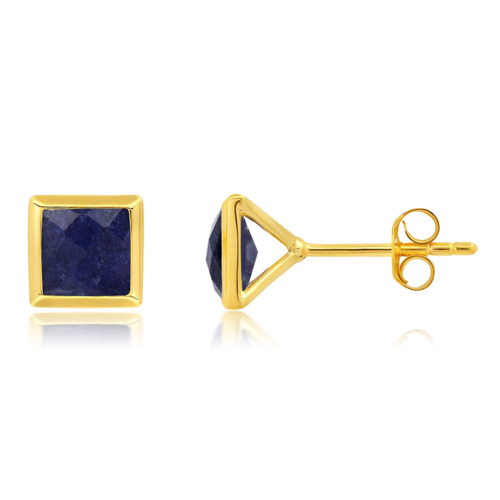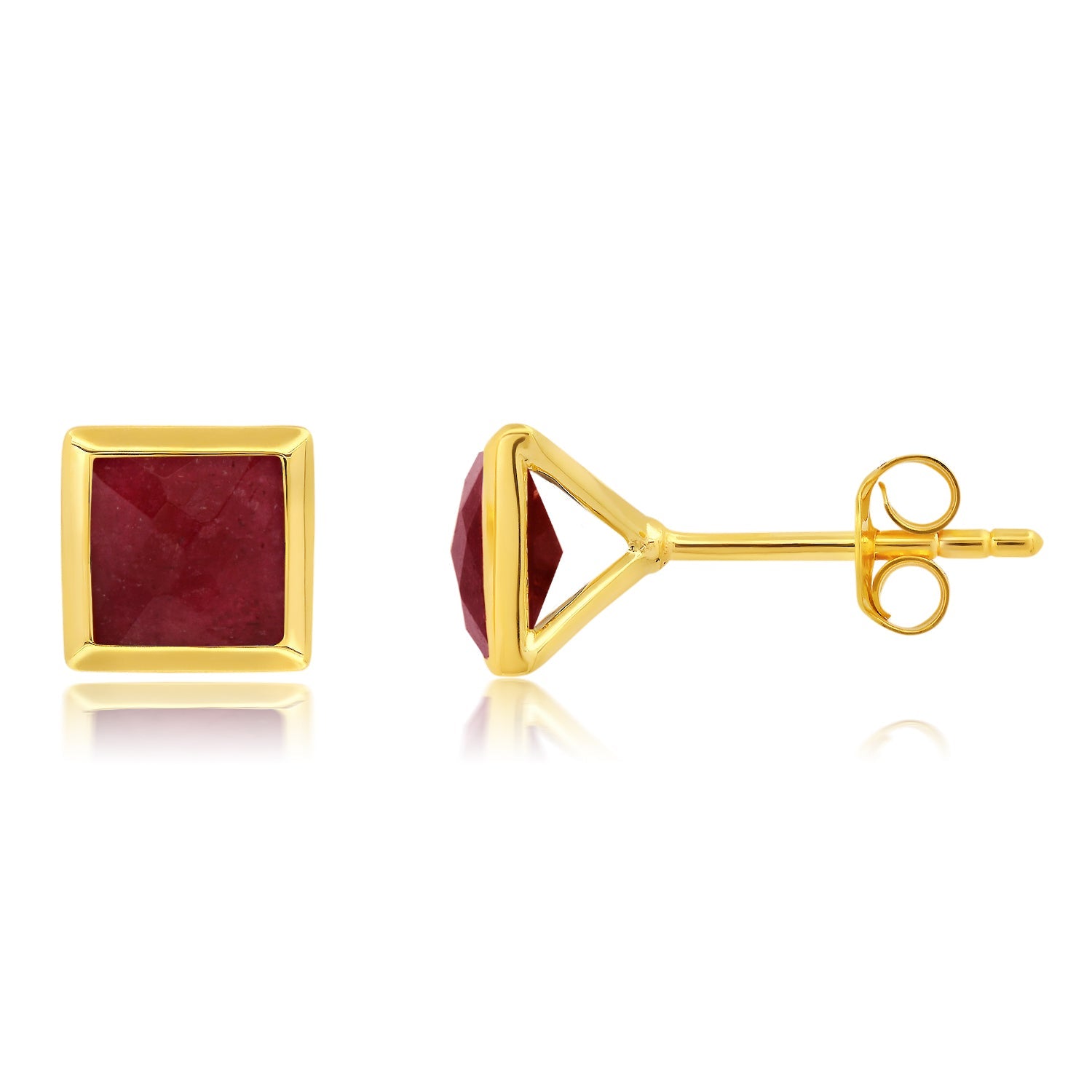 6mm princess-cut gemstones set in sterling silver with 14k yellow gold plating. Push-back closure.