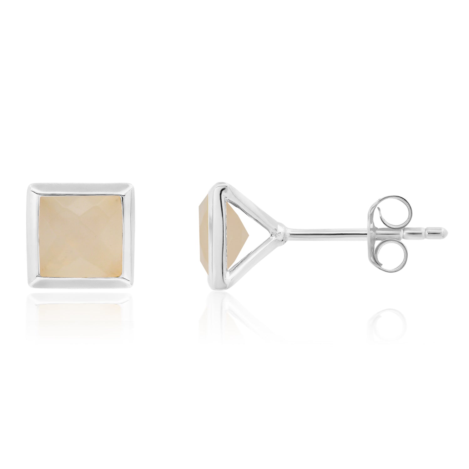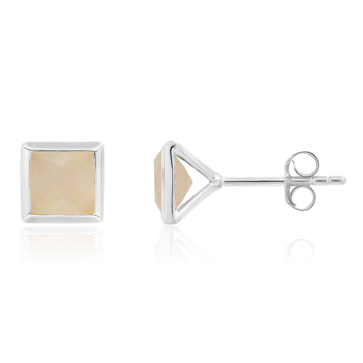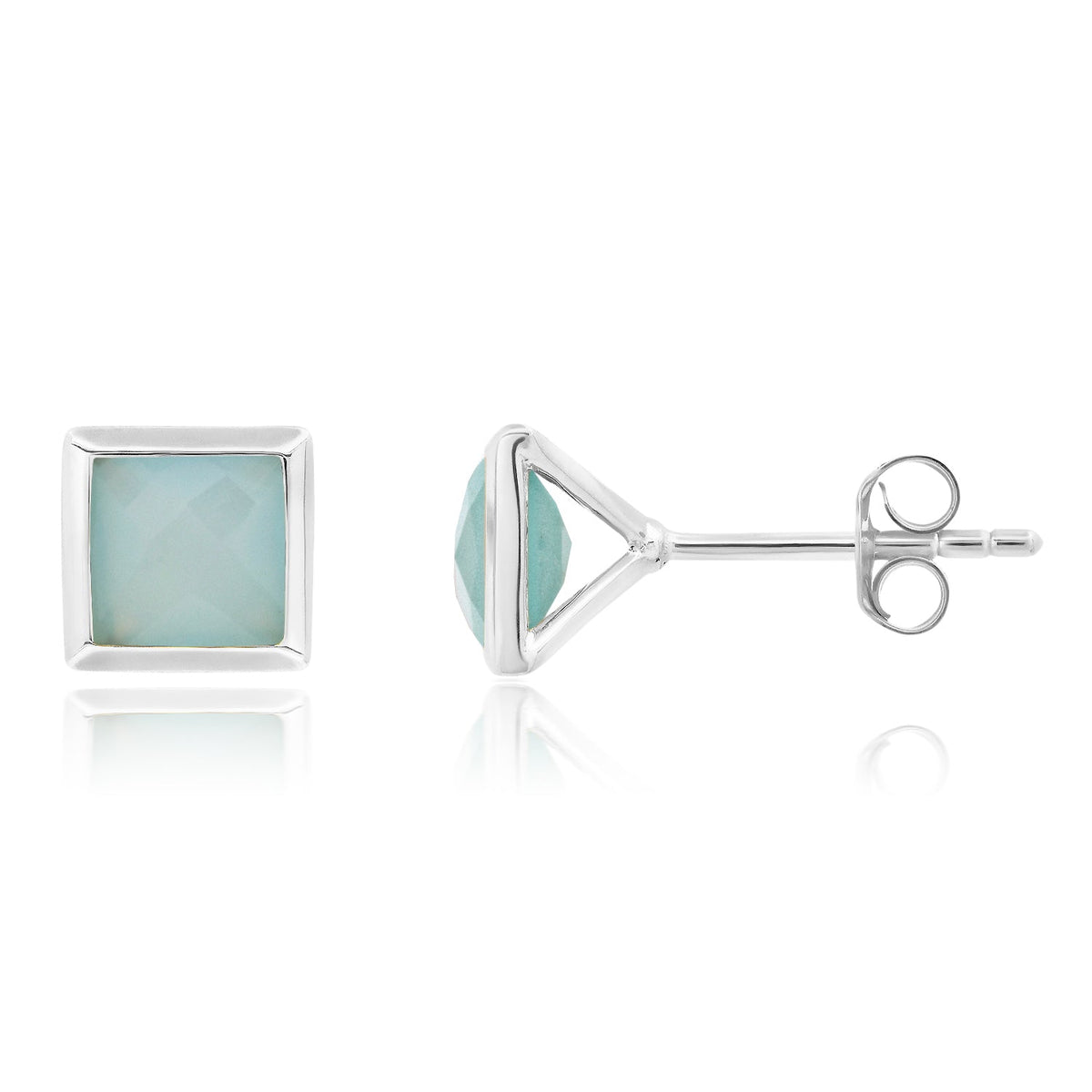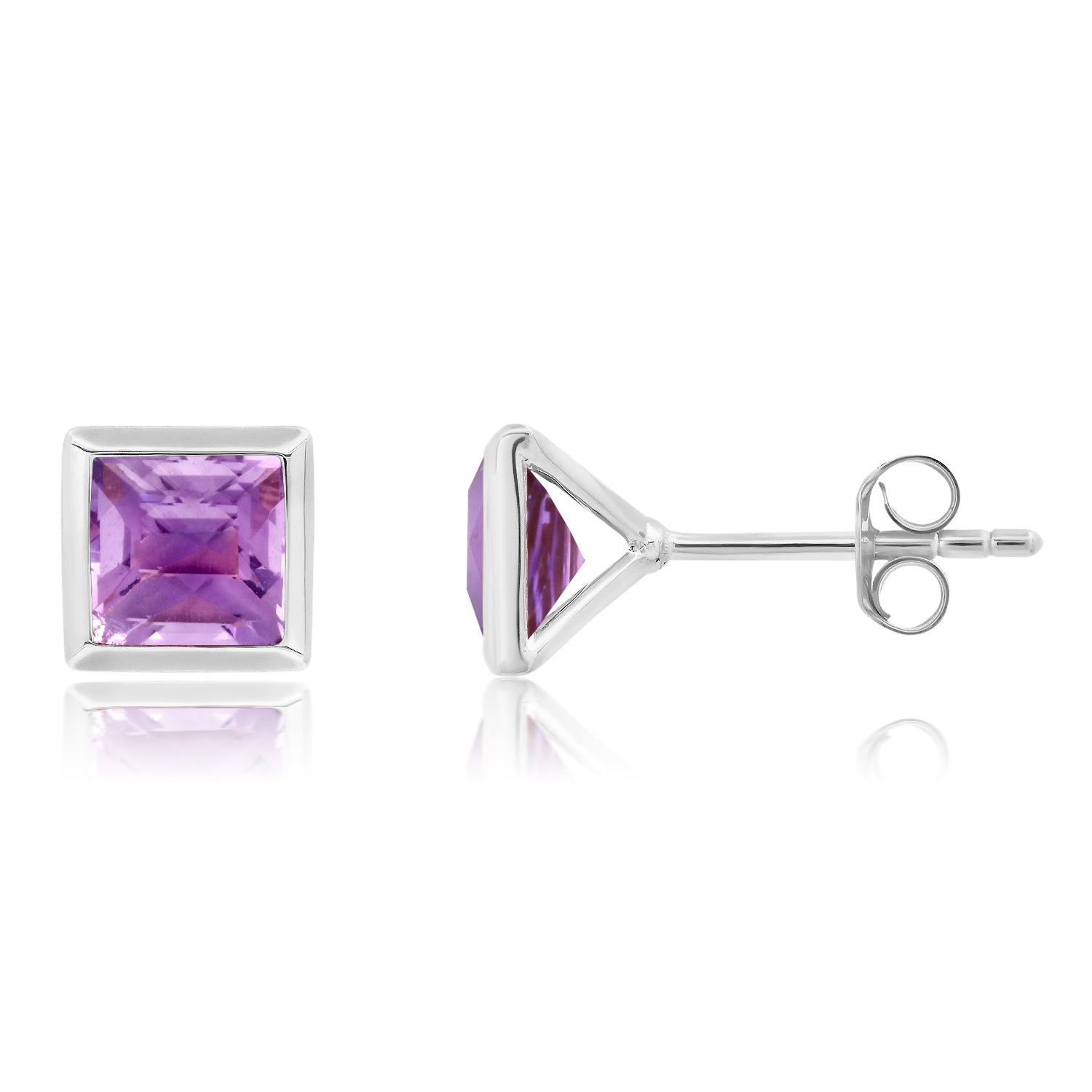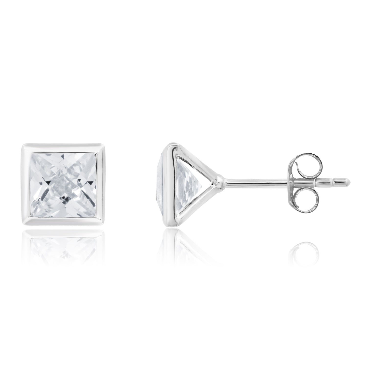 6mm princess-cut gemstones set in sterling silver. Push-back closure.