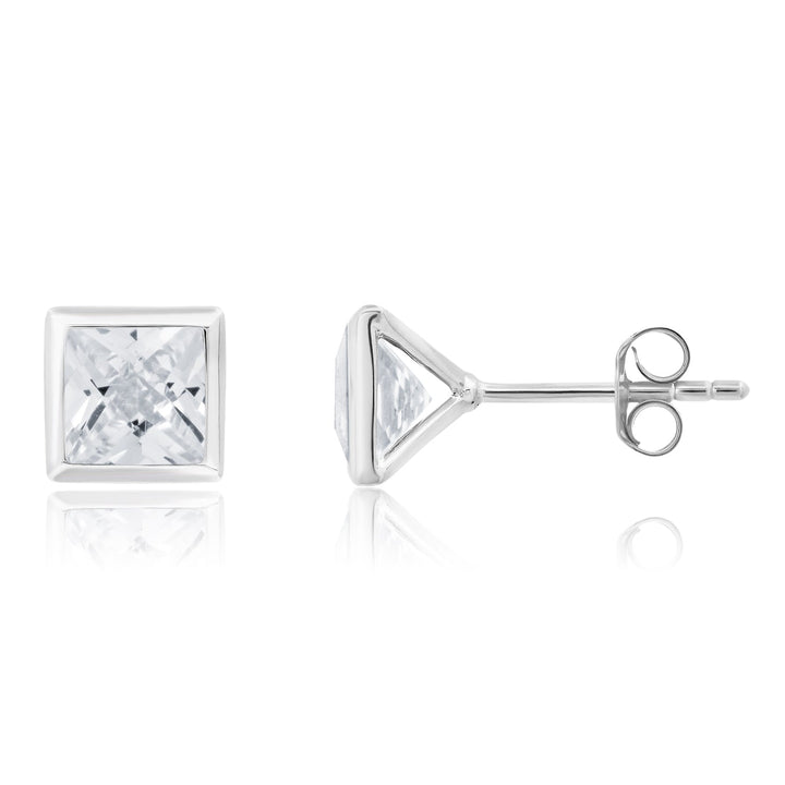 Sterling Silver Princess Cut 6mm Gemstone Square Stud Earrings from Nicole Miller feature 6mm princess-cut gemstones in square settings with a push-back closure, offering a refined and timeless look.