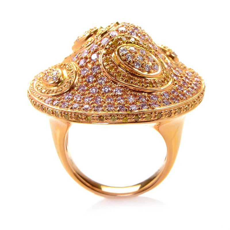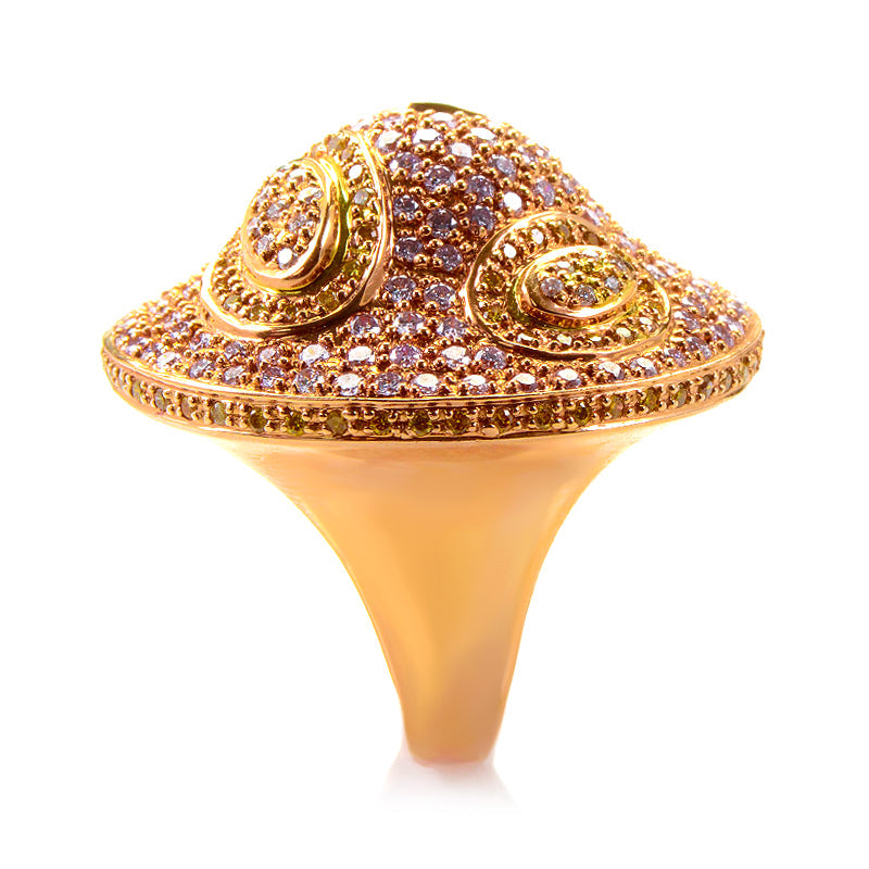 Crafted from 18K rose gold, white and yellow diamonds (~2.72 ct). Ring size 6.75. Comes with a gift box.