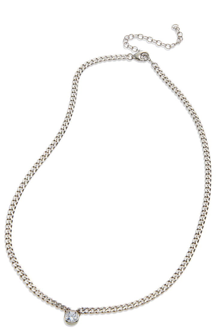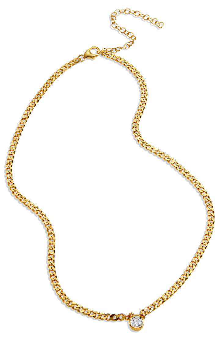 18k Gold Vermeil Circle CZ Necklace by Savvy Cie is a chic and delicate necklace featuring a round cubic zirconia, perfect for special occasions.