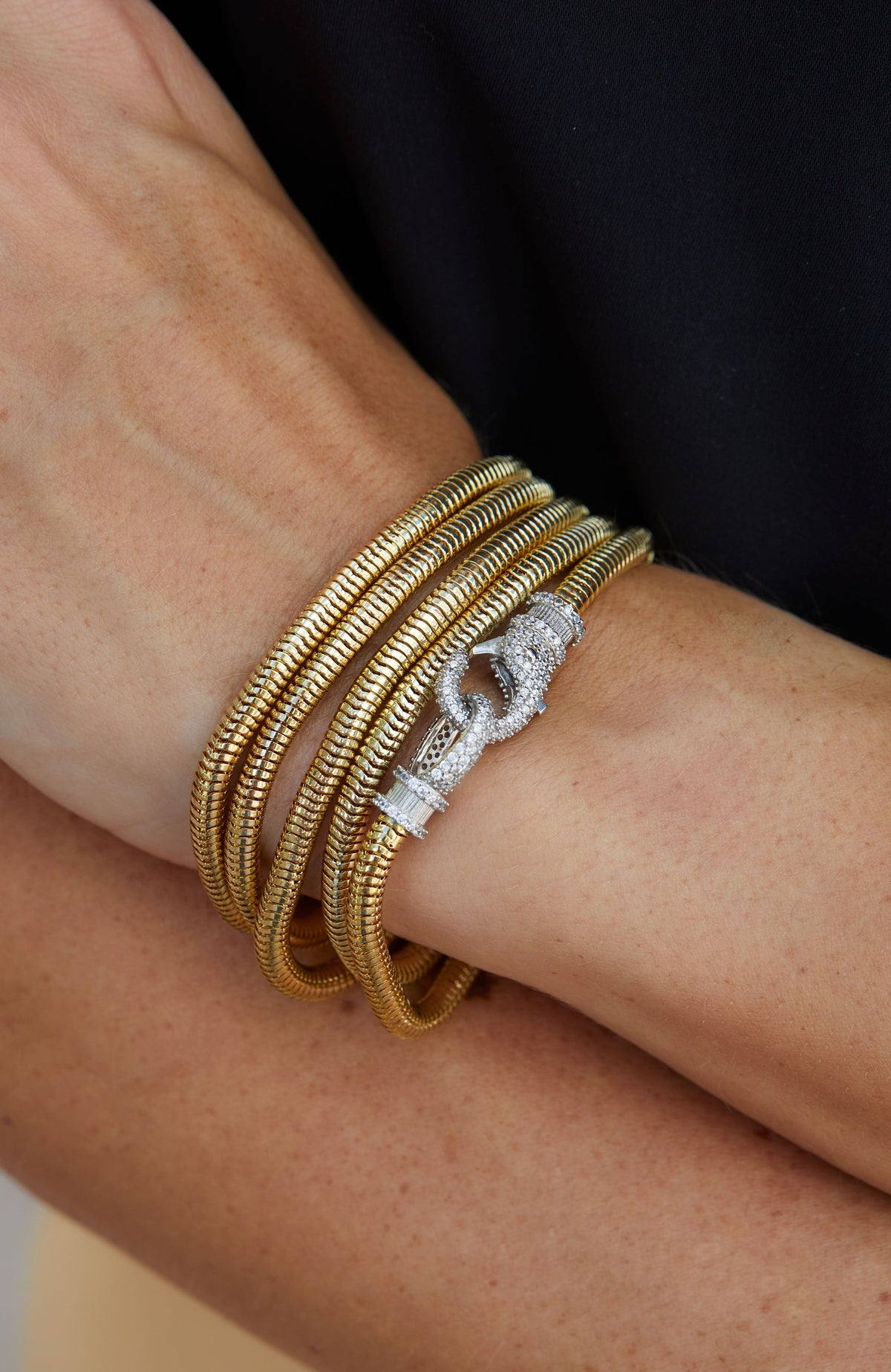Gold Plated Double Necklace by Savvy Cie offers a unique design that can be worn as a double necklace or multi-bracelet. A trendy and versatile piece.
