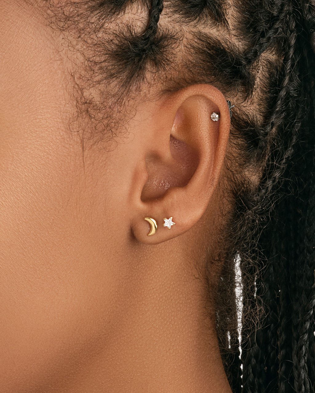 Sterling Silver Crescent & CZ Star Stud Set