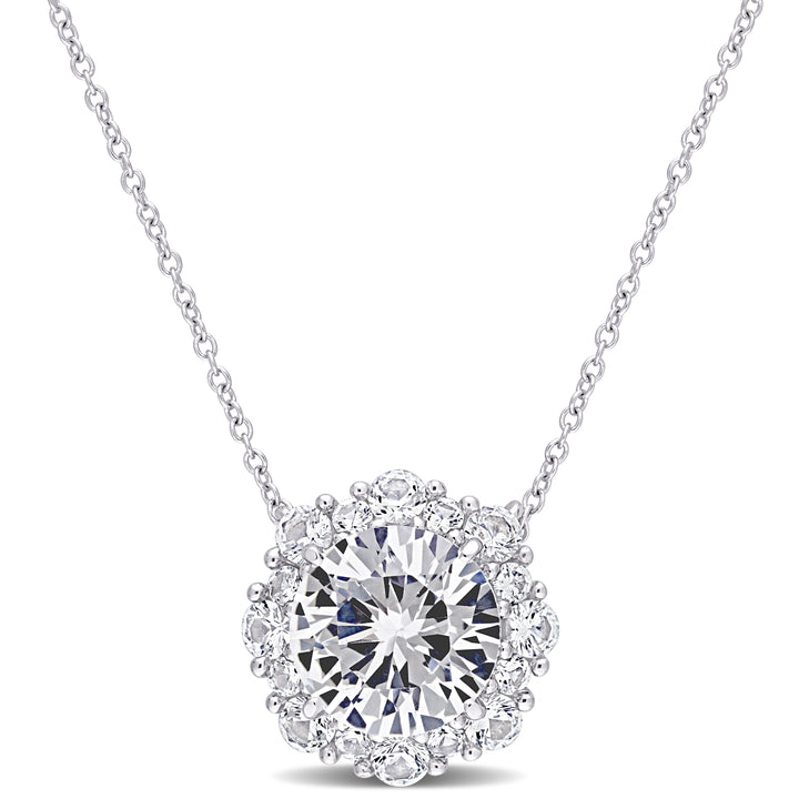 4 3/8 CT TGW Created White Sapphire Halo Pendant with Chain in 10k White Gold