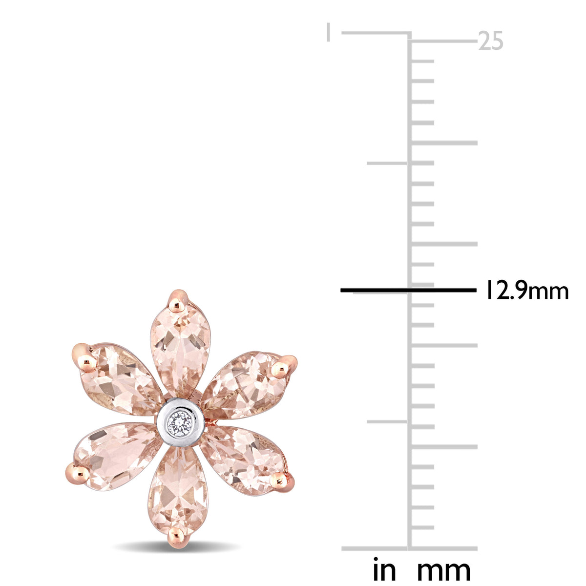 3 CT TGW Morganite and Diamond Accent Floral Stud Earrings in 10k Rose Gold by Mimi & Max showcases 12 pear-cut, prong-set morganite gemstones and two round-cut, bezel-set diamonds in a floral design. A charming pair of earrings that adds elegance to any look.