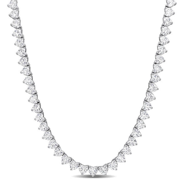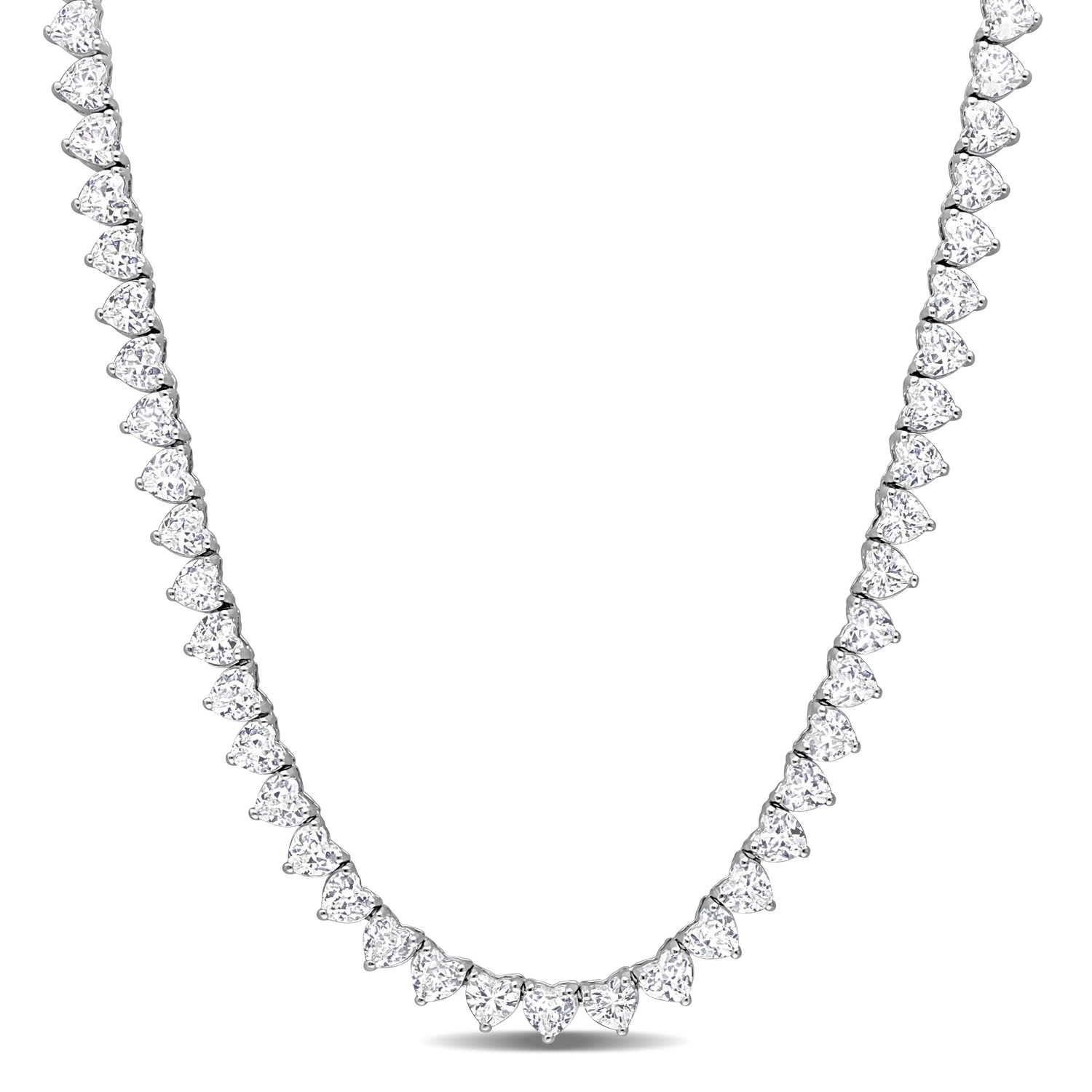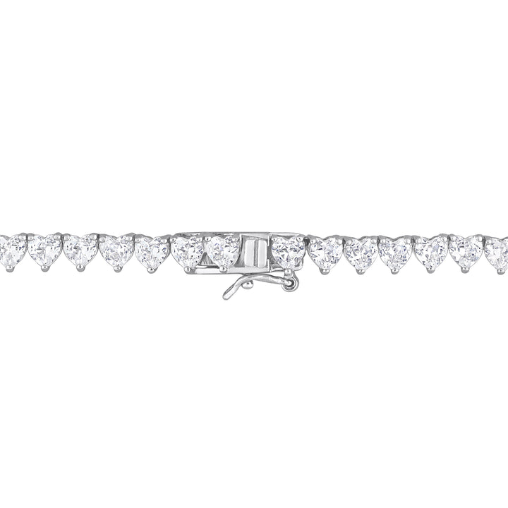 31 1/2 CT TGW Created White Sapphire Tennis Necklace in Sterling Silver by Mimi & Max features 103 heart-cut, created white sapphire gemstones set in sterling silver. This exquisite necklace is a timeless addition to any collection and perfect as a gift.