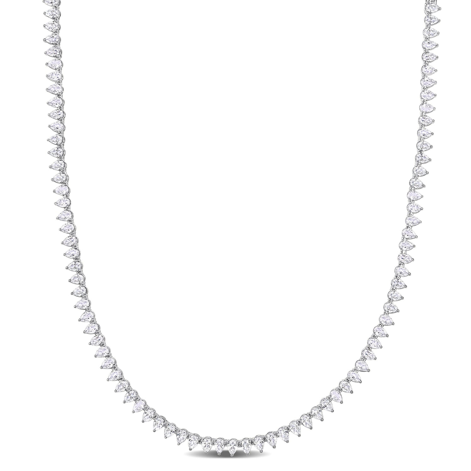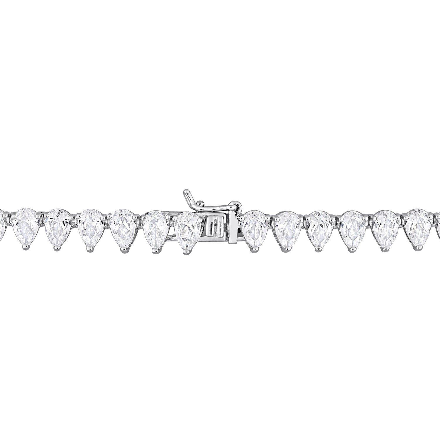 44 1/2 CT TGW Created White Sapphire Teardrop Tennis Necklace in Sterling Silver by Mimi & Max features 101 pear-cut, created white sapphires set in sterling silver, making it a versatile and elegant piece suitable for any occasion.