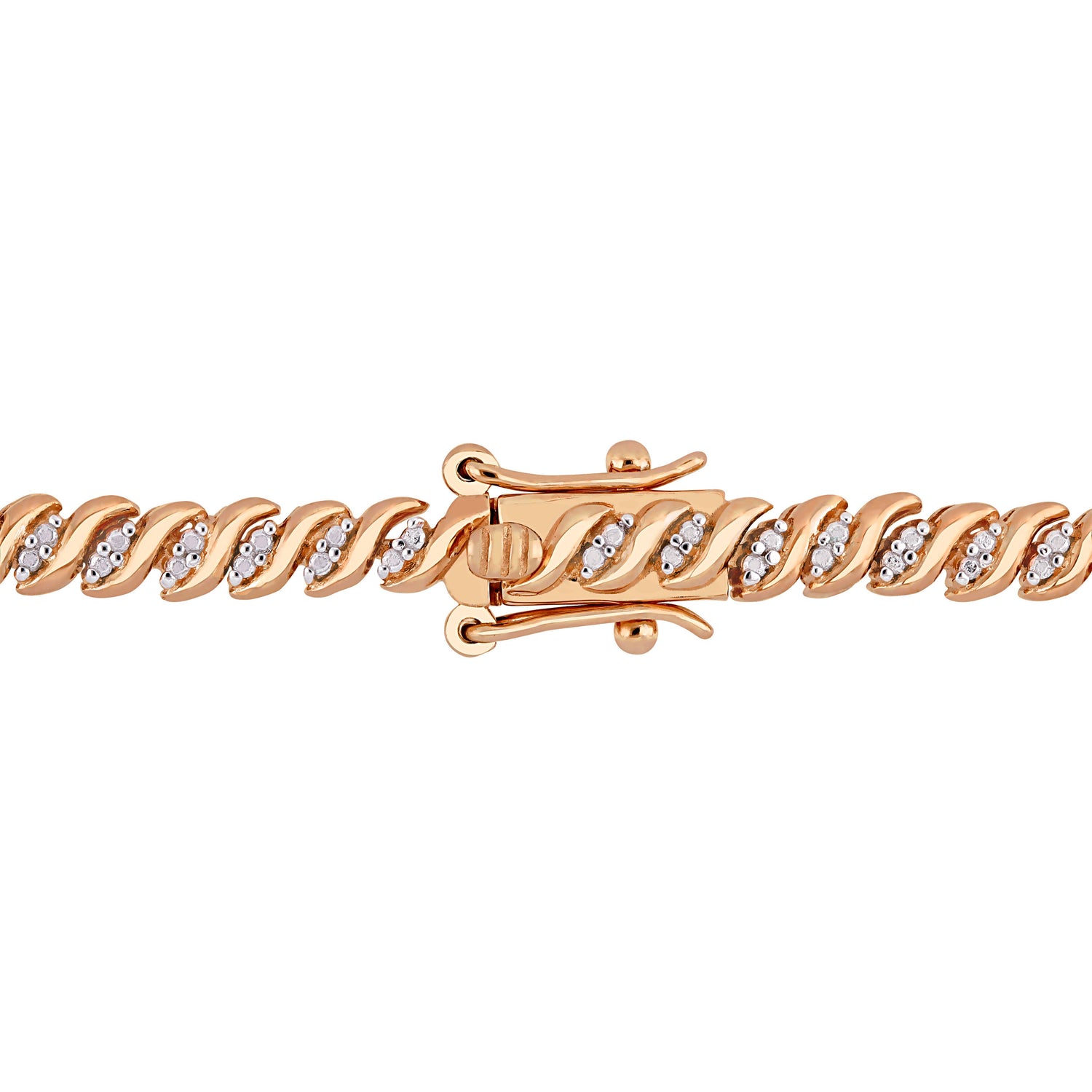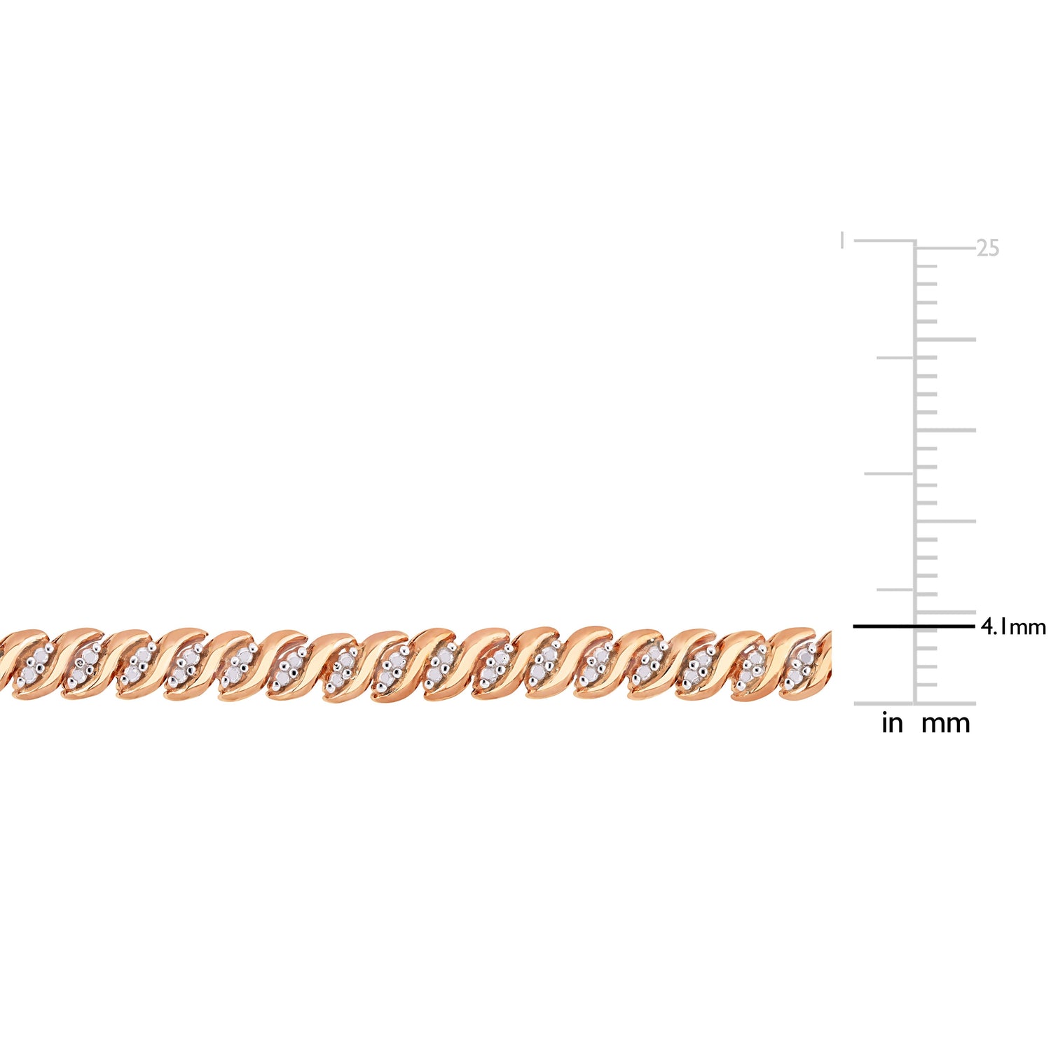 1 CT TW Diamond S-Link Tennis Necklace in Rose Plated Sterling Silver by Mimi & Max features 200 round-cut, prong-set diamonds in a unique S-link design, adding elegance and sophistication to any ensemble.