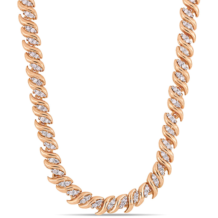 1 CT TW Diamond S-Link Tennis Necklace in Rose Plated Sterling Silver