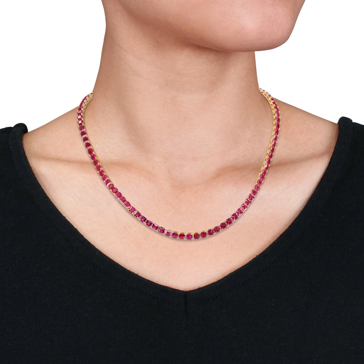 48 1/2 CT TGW Created Ruby Tennis Necklace in Yellow Gold Plated Sterling Silver