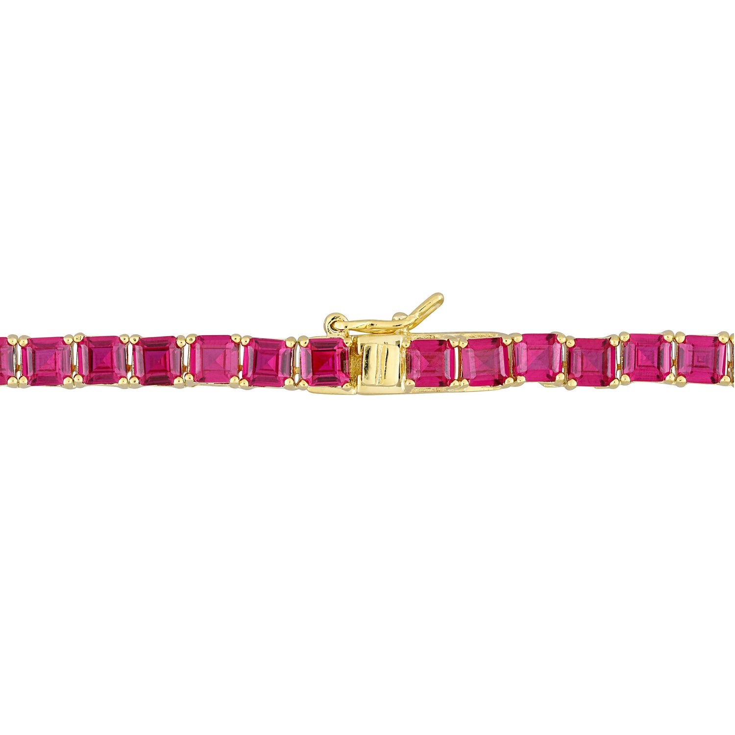 Crafted in yellow plated sterling silver, featuring 101 square-cut created ruby gemstones (48 1/2 CT TGW). 18-inch length, enhanced with a high-polish finish for added shine.