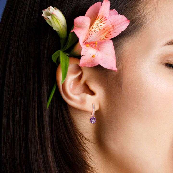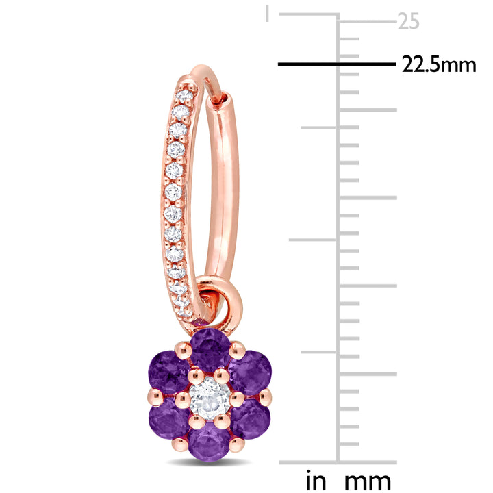1 1/4 CT TGW Amethyst nd White Topaz and 1/8 CT TDW Diamond Floral Huggie Earrings in 10k Rose Gold
