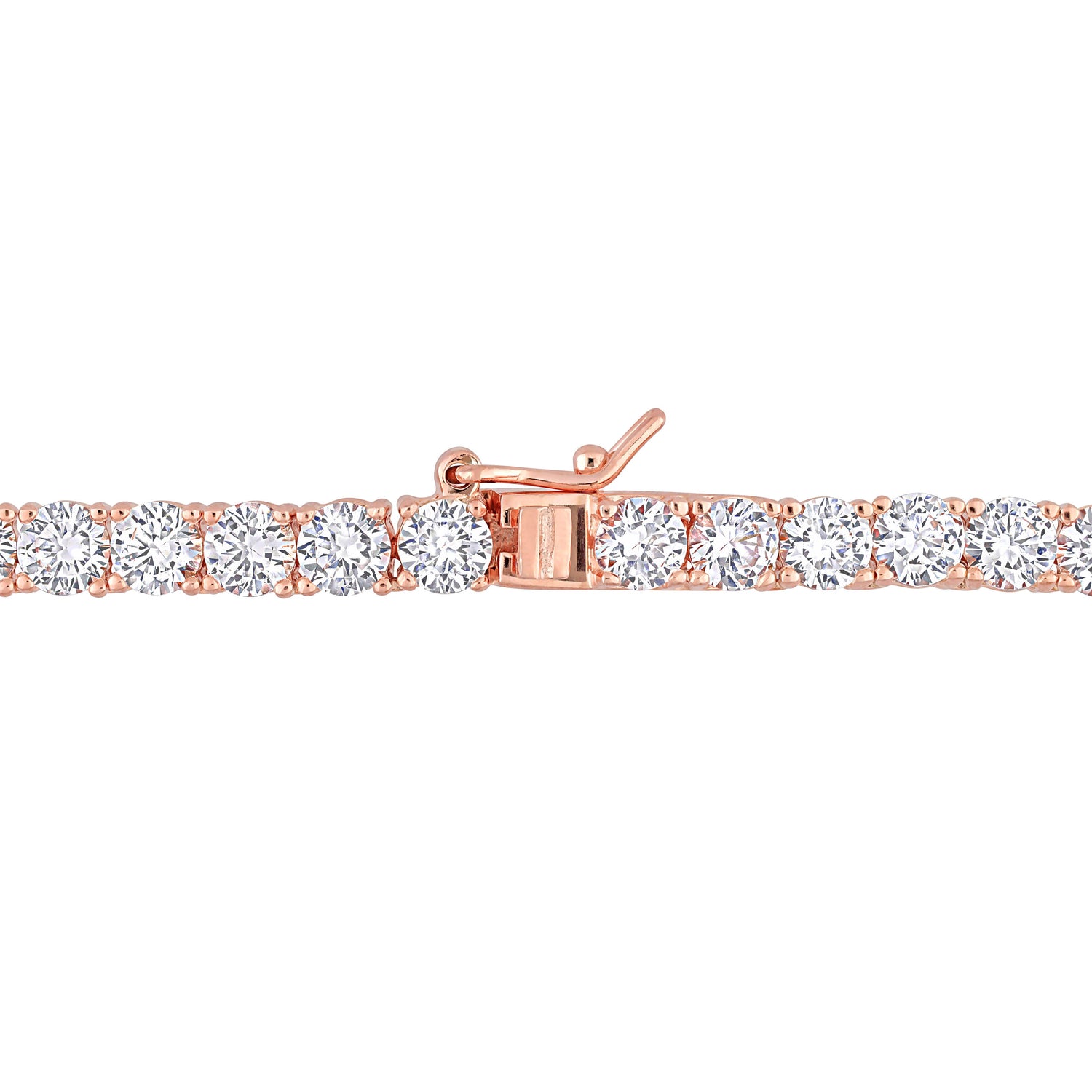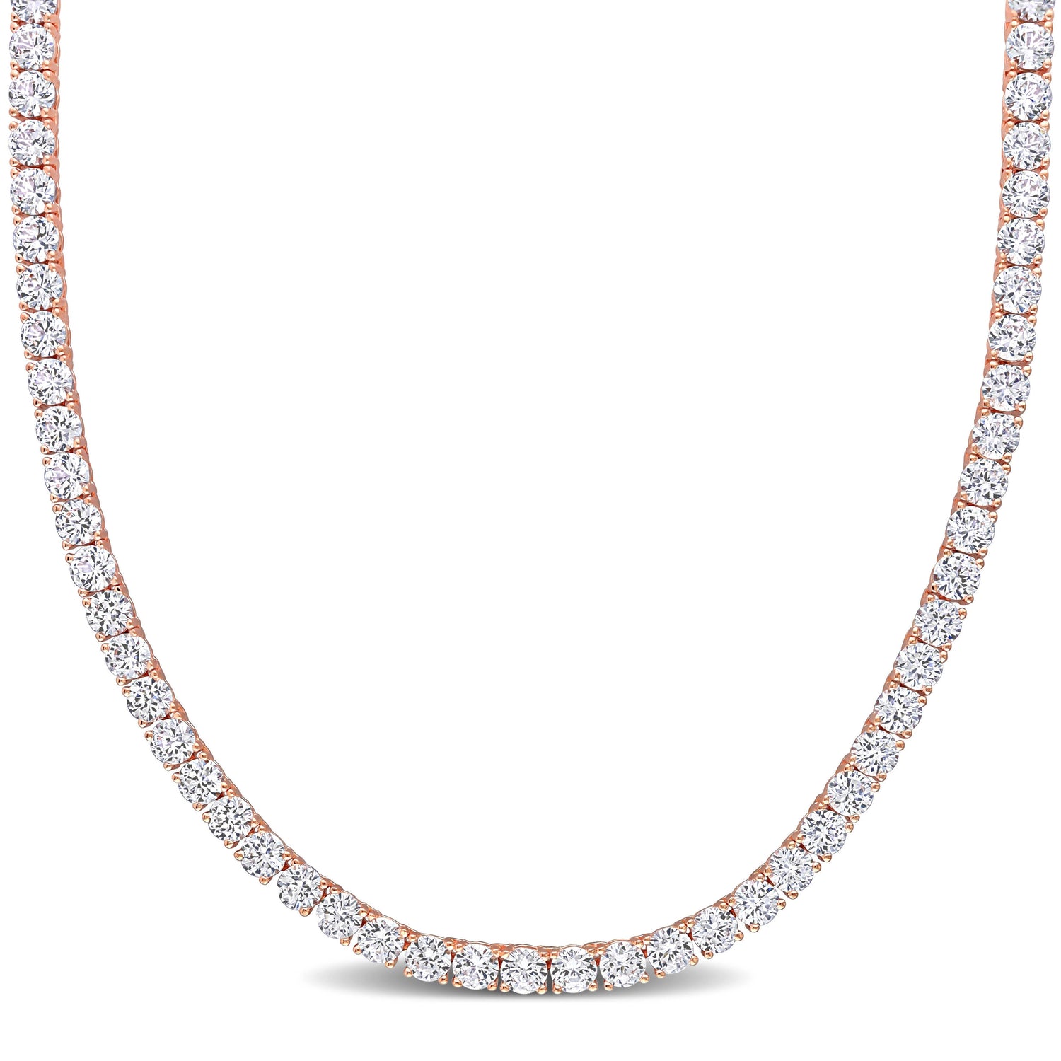 33 CT TGW Created White Sapphire Tennis Necklace in Rose Plated Sterling Silver