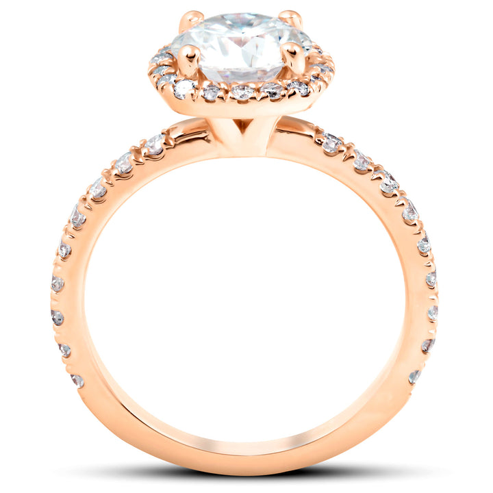 G/VS 2 Ct Moissanite & Diamond Cushion Halo Engagement Ring 14k Rose Gold