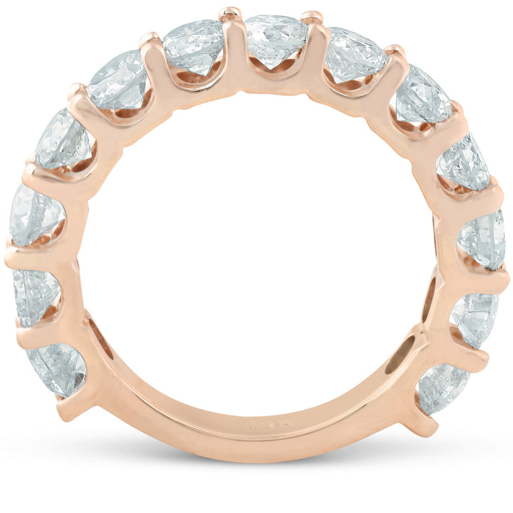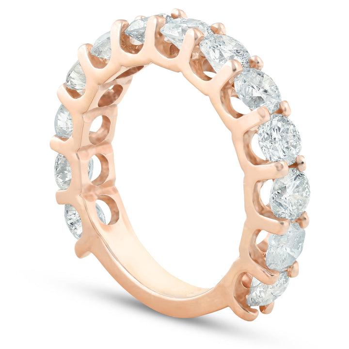 The 2 1/2ct Diamond U Prong Wedding Ring 14k Rose Gold Anniversary Band by Pompeii3 is a high-quality band featuring round brilliant-cut diamonds. The diamonds are prong-set in solid 14k rose gold, going 3/4 of the way around the ring, offering an elegant and timeless design.