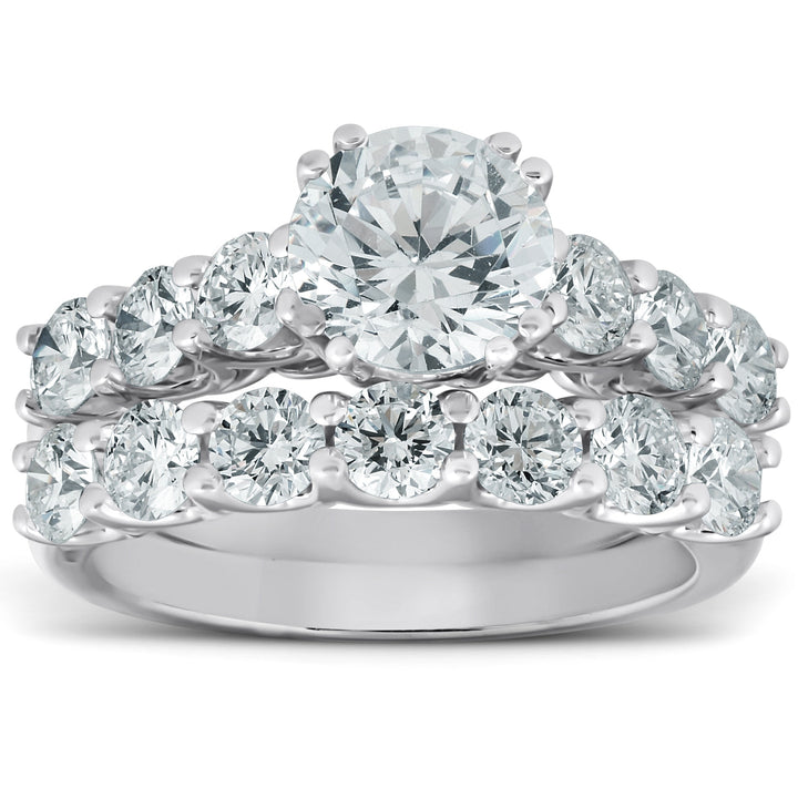 The 3 Ct Diamond Engagement Wedding Ring Set (1ct Center) 14k White Gold Enhanced by Pompeii3 is a stunning bridal set featuring a 1 ct round brilliant-cut lab-grown diamond as the center stone, complemented by 13 round accent diamonds. The set is prong-set in solid 14k white gold, creating a sparkling and refined look.