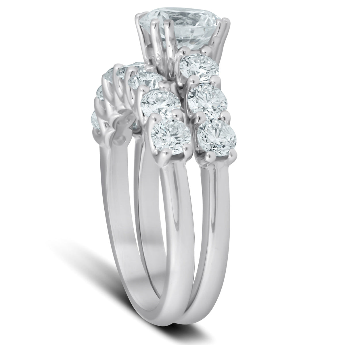 3 Ct Diamond Engagement Wedding Ring Set (1ct Center) 14k White Gold Enhanced