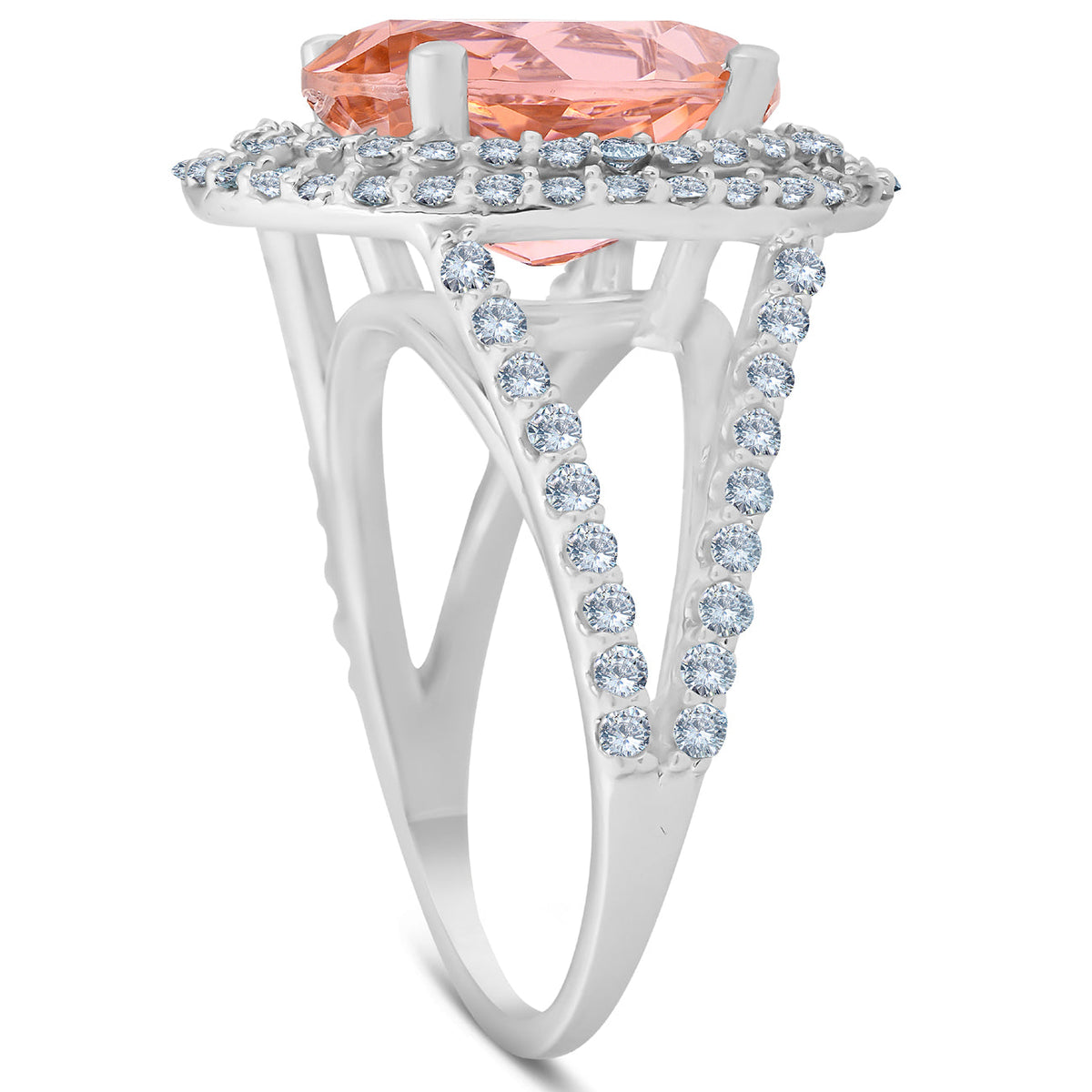 6 1/5 Ct Huge Diamond & Oval Simulated Morganite Halo Ring 14k White Gold