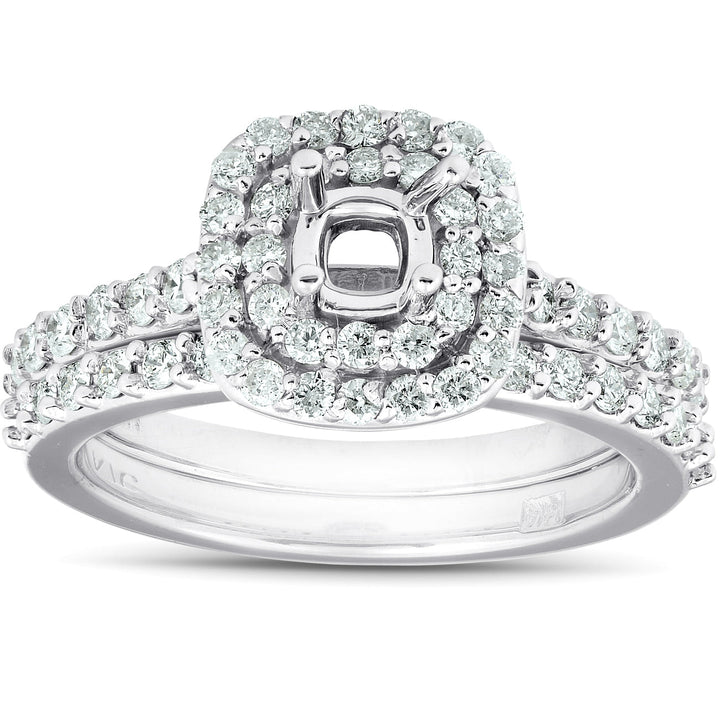 3/4Ct Double Cushion Halo Diamond Engagement Ring Setting Mount 14k White Gold