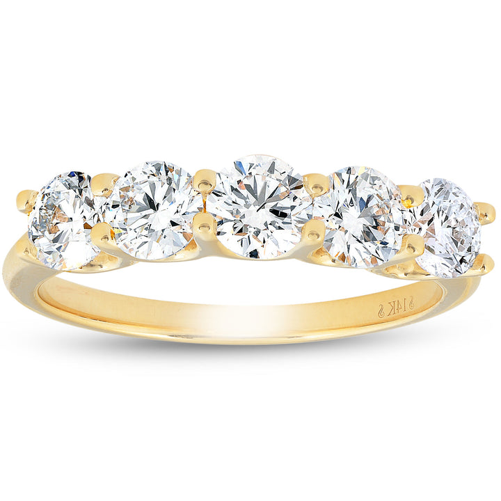 1 1/4 Ct Lab Grown Diamond Five Stone Wedding Ring 14k Yellow Gold U Prong