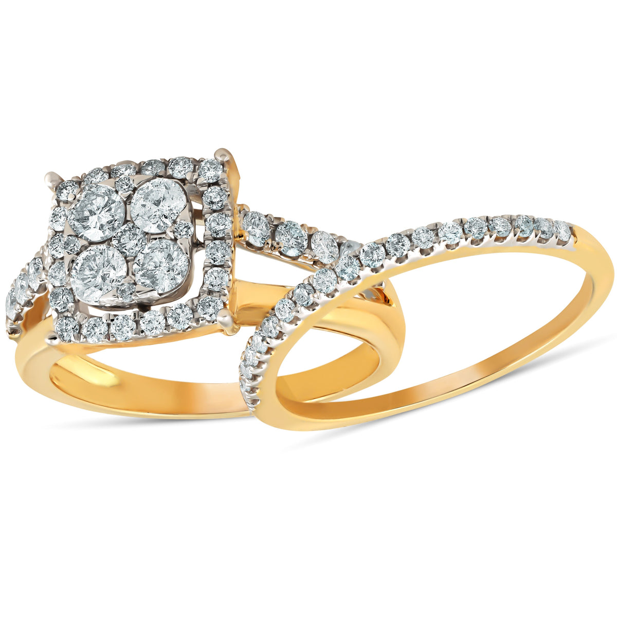 1 1/10 Ct Diamond Cushion Halo Engagement Ring Wedding Set 10k Yellow Gold
