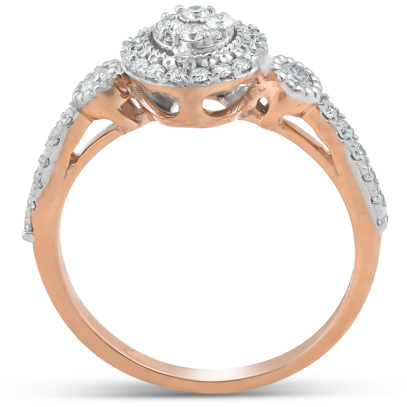 Handcrafted in 10k rose gold, featuring 40 round cut genuine diamonds prong set in high polished finish with milgrain accent.