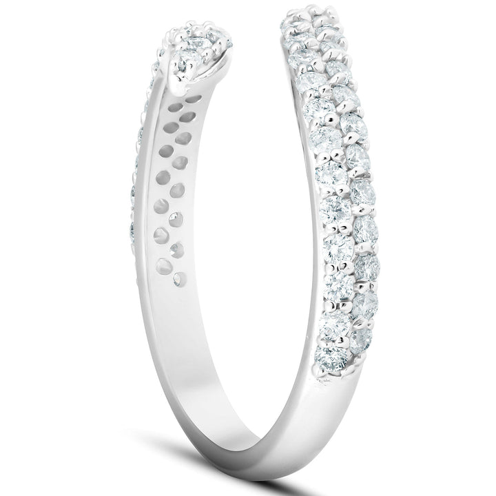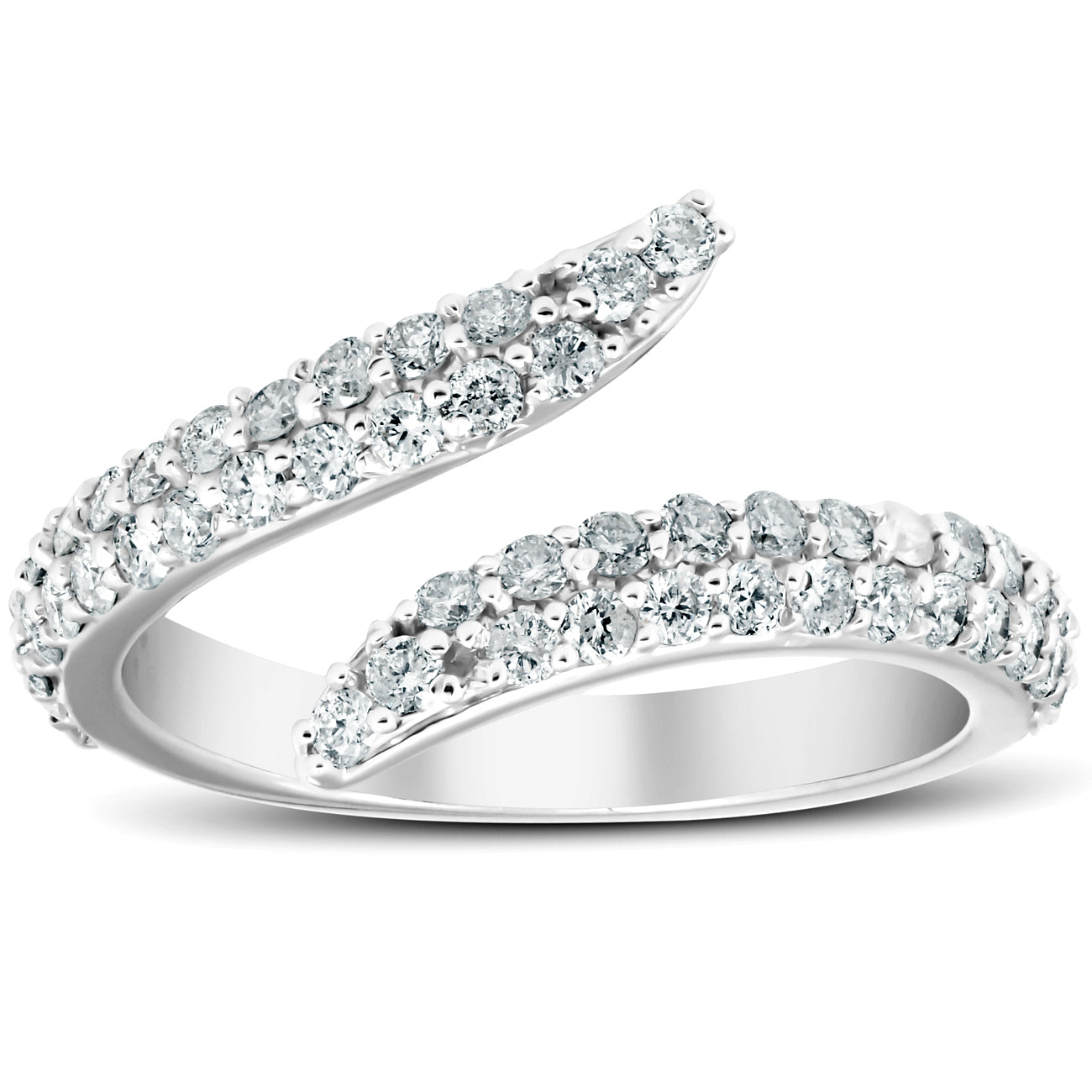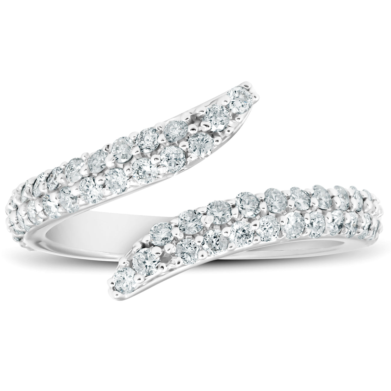 3/4 Ct Diamond Viper Ring Womens 14k White Gold by Pompeii3 Rings features 54 round brilliant cut diamonds, prong set in solid 14k white gold, designed in a unique viper-inspired bypass style. This statement ring is perfect for fashion or cocktail events.