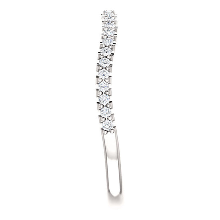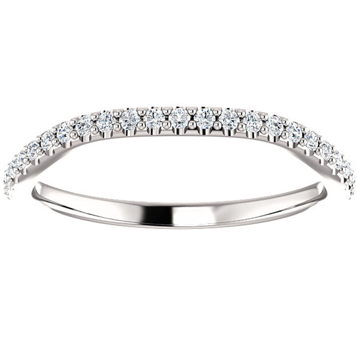 1/5 Ct Curved Diamond Guard Enhancer Wedding Ring 14k White Gold by Pompeii3 Rings is designed to sit flush against another ring, featuring 27 round cut genuine diamonds. This curved contour band enhances the overall beauty and shape of the primary ring.