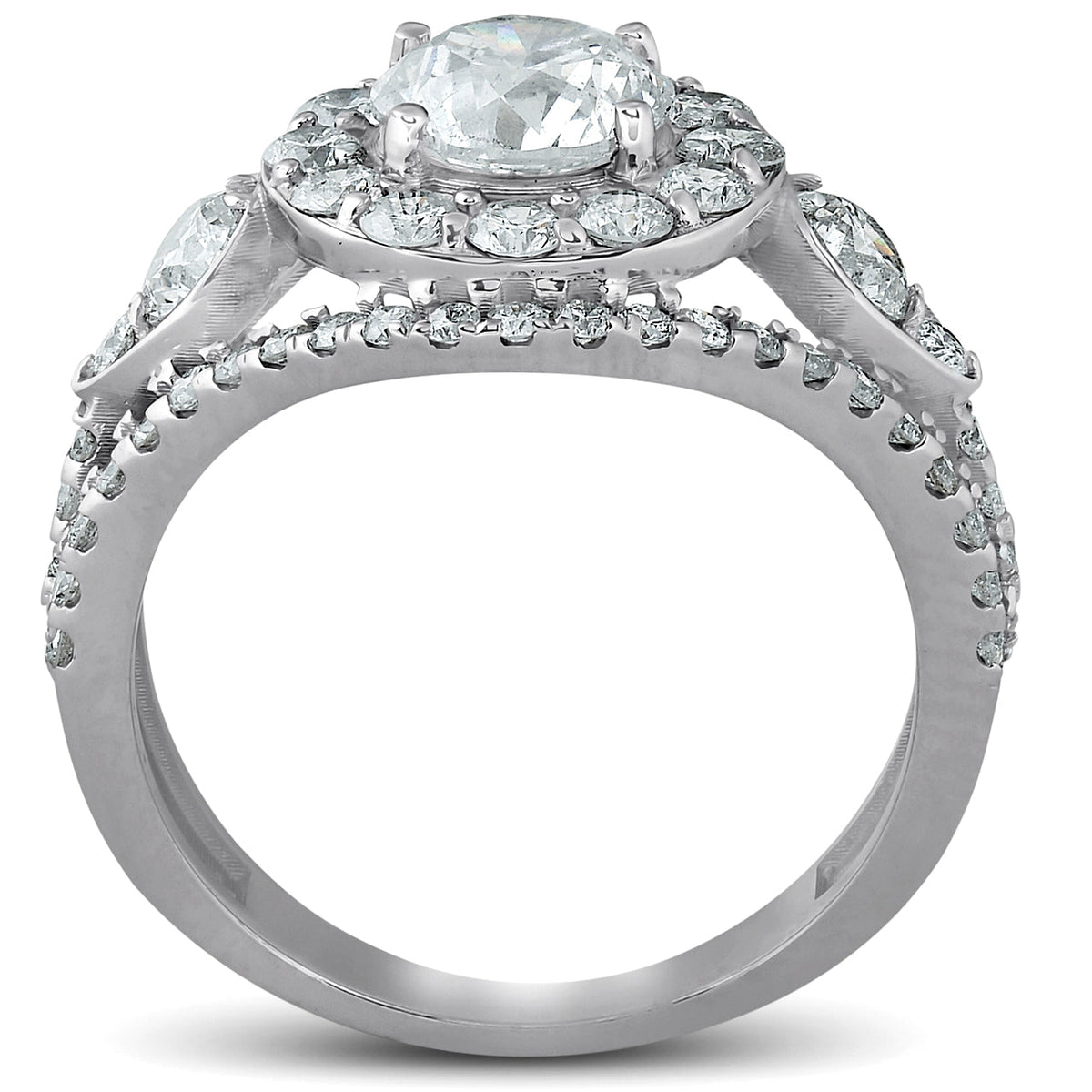 2 ct Halo Diamond Multi Row Engagement Ring 14k White Gold