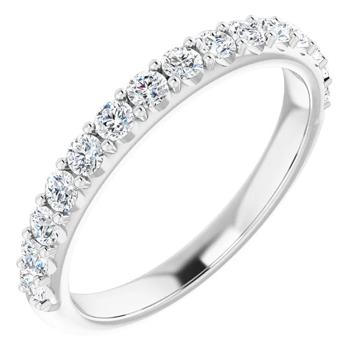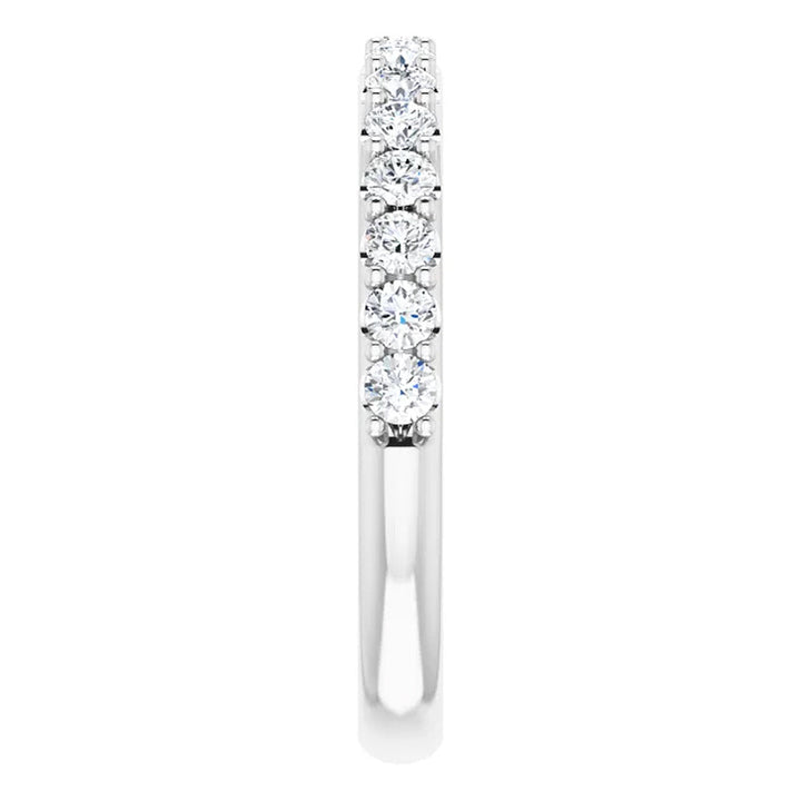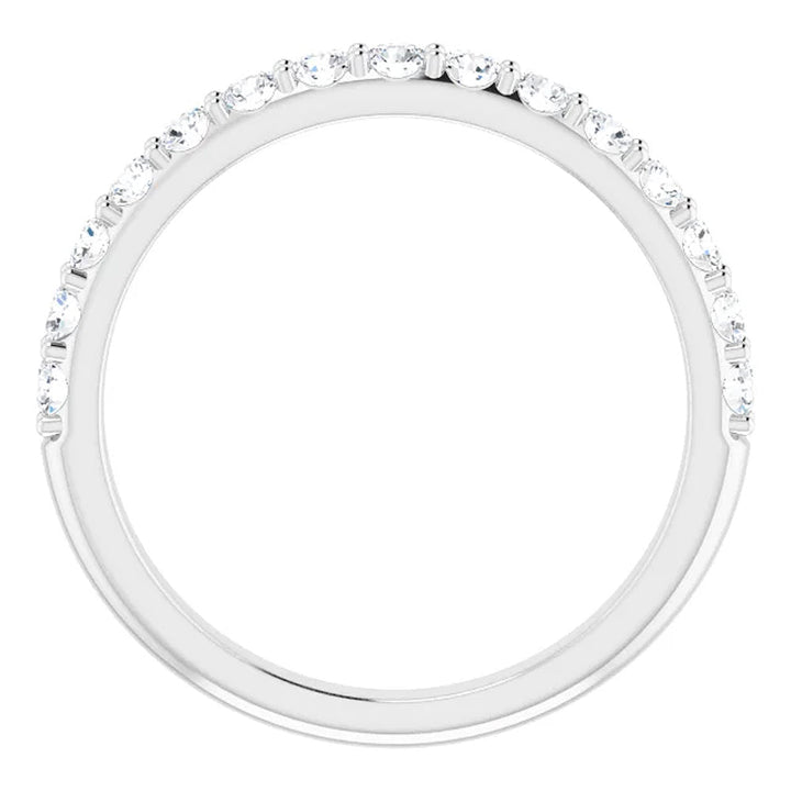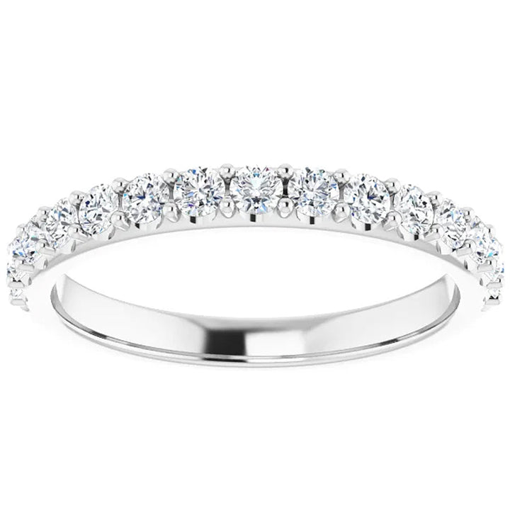 1/2Ct Lab Grown Diamond Stackable Anniversary Wedding Ring 14k White Gold by Pompeii3 Rings features 15 round cut lab-grown diamonds, prong set in solid 14k white gold. This versatile band is ideal for stacking or complementing other rings.