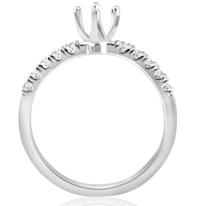 1/4ct Diamond Engagement Ring Setting 14k White Gold Mount by Pompeii3 Rings features 10 round cut diamonds around the mounting, which fits a round stone approximately 5mm. This setting provides a sophisticated and elegant base for a custom diamond engagement ring.