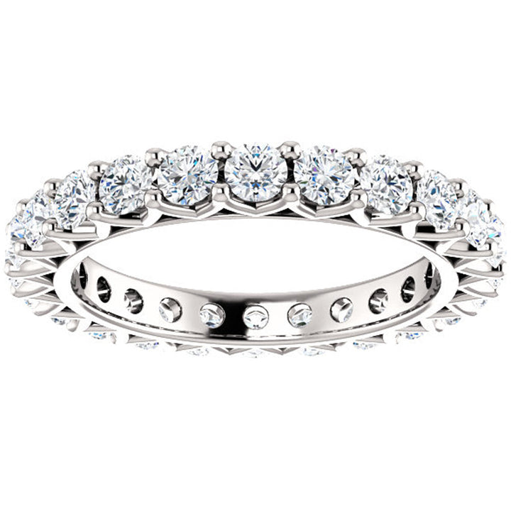 2 Ct Diamond Eternity Ring 14k White Gold Womens Stackable Wedding Band by Pompeii3 Rings features round brilliant cut diamonds encircling the entire ring, prong set in solid 14k white gold. The ring can be worn alone or stacked with other bands.