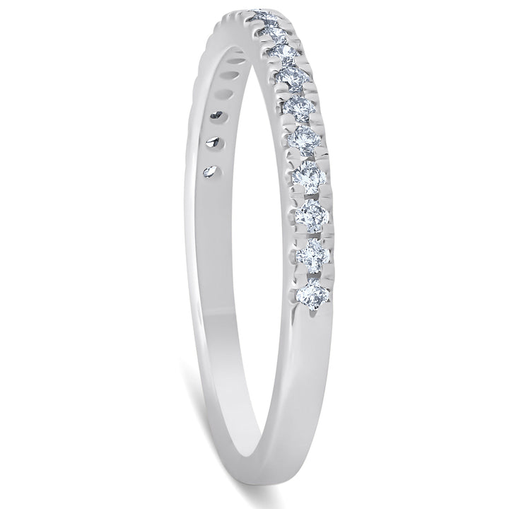 1/4 Ct Lab Grown Diamond EX3 Wedding Ring 10k White Gold by Pompeii3 Rings features 20 round cut EX3 lab-grown diamonds, prong set in solid 10k white gold. This sleek wedding band is perfect for pairing with engagement rings or stacking with other bands.
