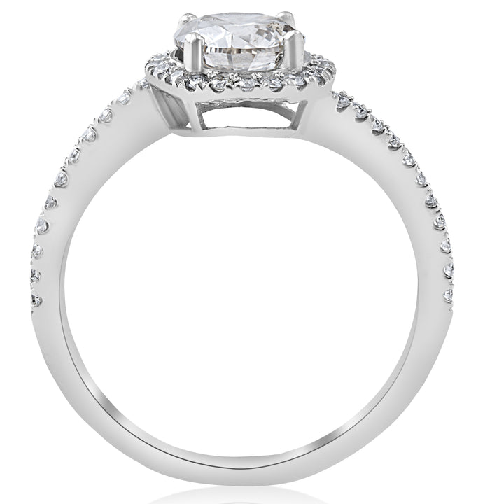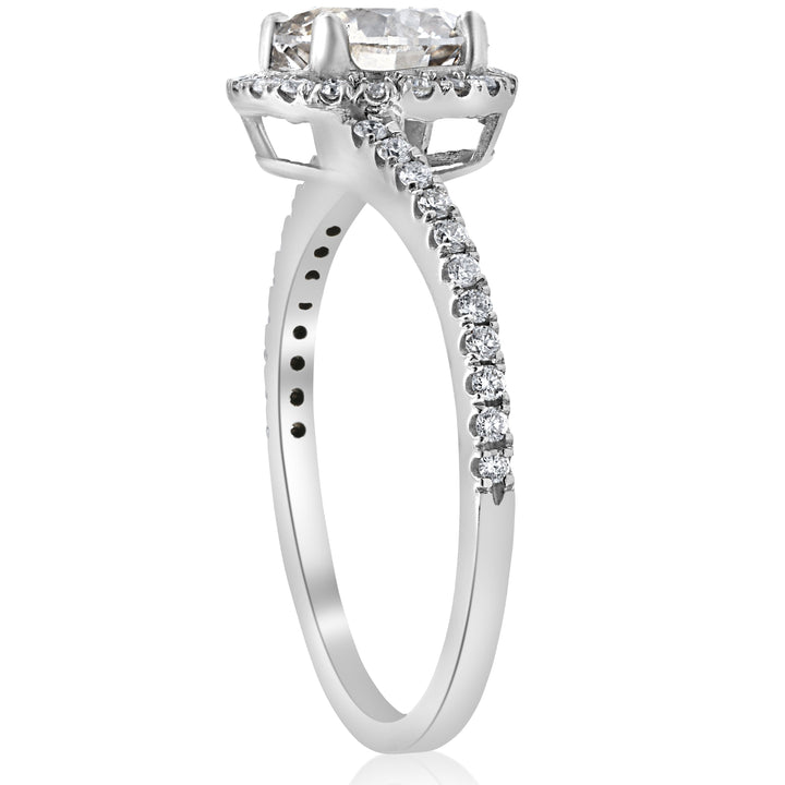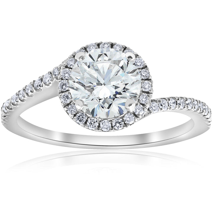 1 1/3ct Diamond Halo Twist Engagement Ring 1ct Center 14k White Gold