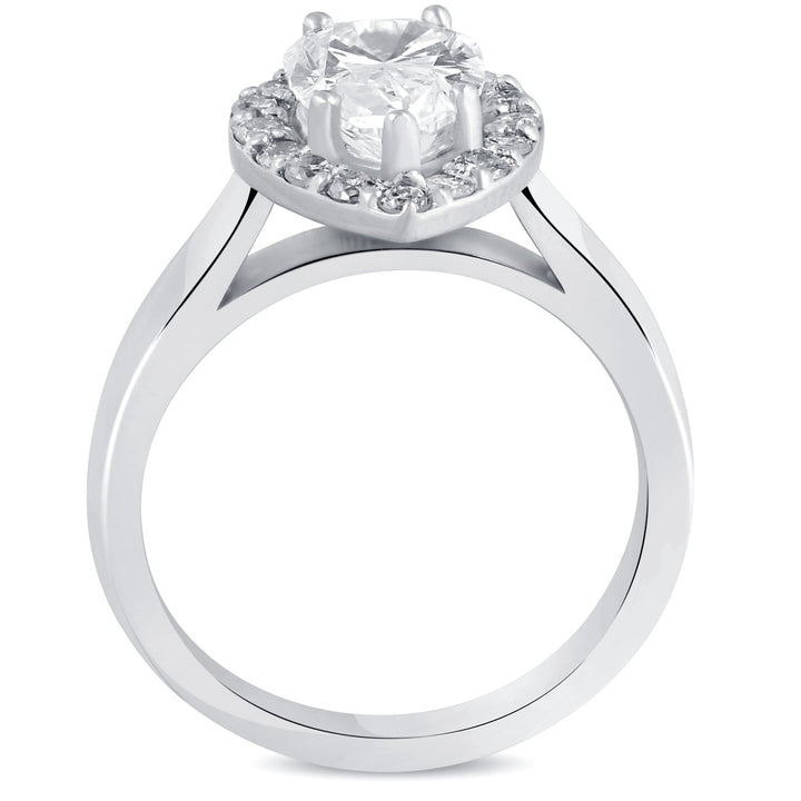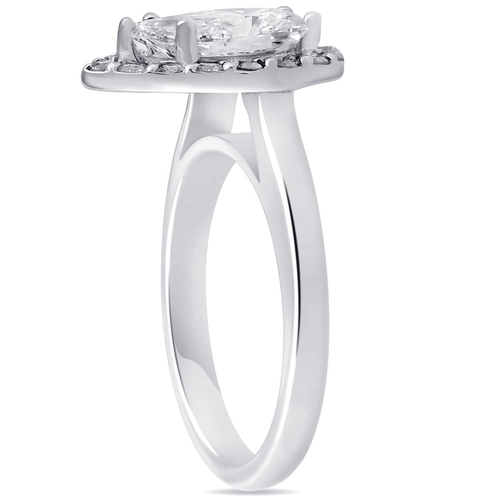 G/SI 1.85 ct Pear Shape Diamond Halo Engagement Ring 14k White Gold Enhanced