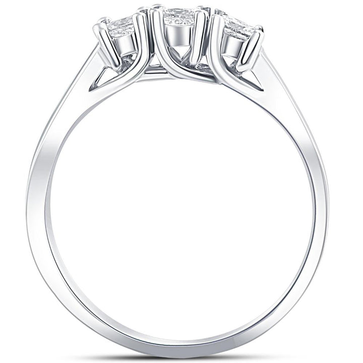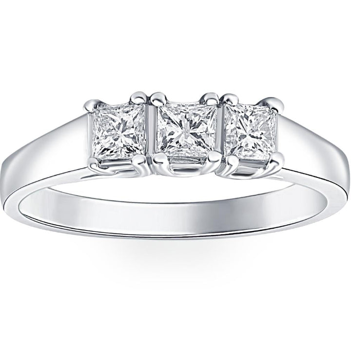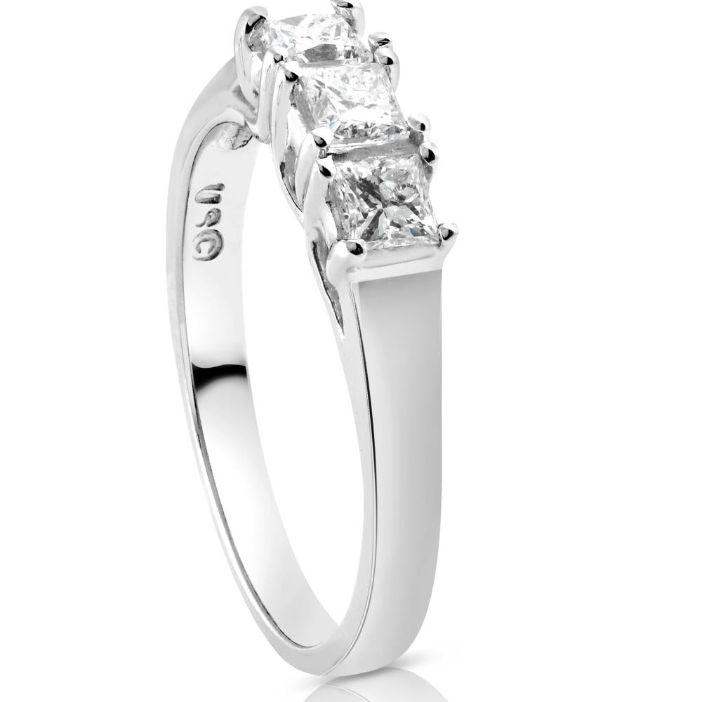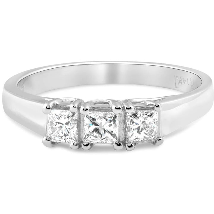 1ct Three Stone Princess Cut Diamond Ring 14K White Gold