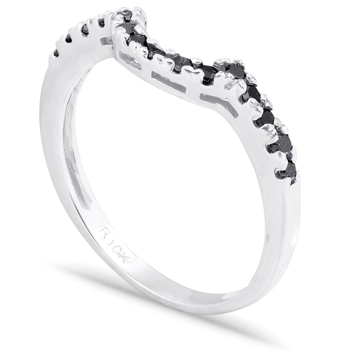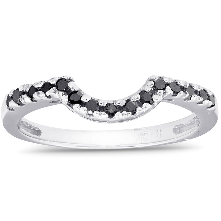 1/4 Ct Black Diamond Curved Notched Wedding Engagement Enhancer Ring Band 10k White Gold by Pompeii3 Rings features round cut genuine black diamonds prong set in solid 10k white gold. The ring has an 8x2mm notch design, making it a perfect enhancer for a wedding or engagement ring.