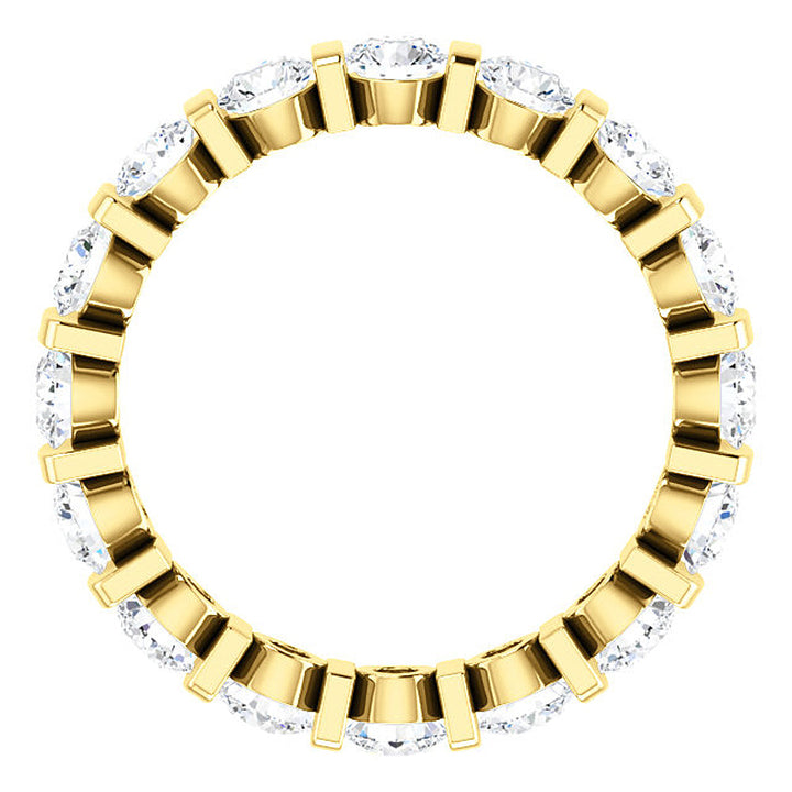 2 1/2 Ct Lab Grown Diamond Bar Set Eternity Ring 14k Yellow Gold by Pompeii3 Rings features round cut lab-grown diamonds bar set around the band, offering a modern and sleek look. This fashionable ring can be worn alone or stacked with other bands for a personalized style.