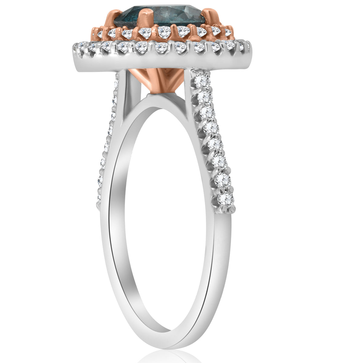 2.10ct Double Halo Blue Diamond 14k Rose & White Gold Halo Engagement Ring