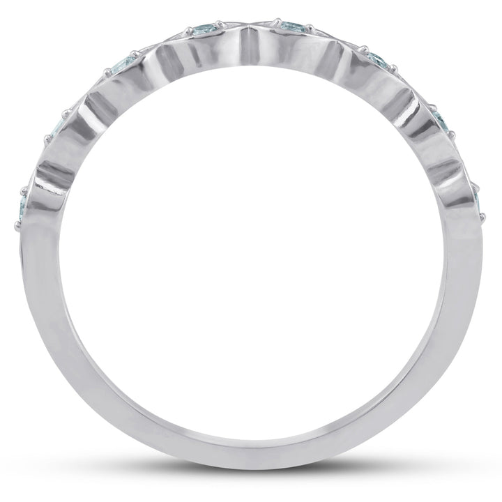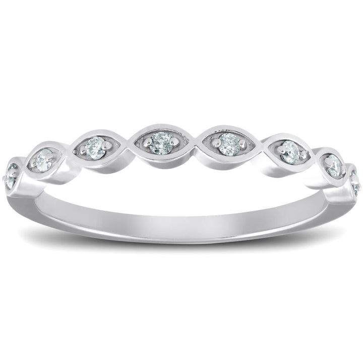 Diamond Wedding Ring Women's Stackable 10k White Gold Anniversary Band by Pompeii3 Rings features eight round brilliant cut diamonds set in marquise-shaped settings, creating a unique and elegant design. This ring is perfect for stacking with engagement rings or other wedding bands.