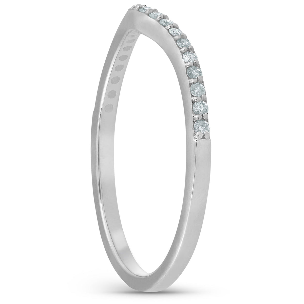 1/8cttw Diamond Curved Wedding Engagement Guard Enhancer Band 14k White Gold by Pompeii3 Rings features 20 round cut genuine diamonds. The diamonds are prong set in a smooth curve band that fits snugly with your engagement ring, adding an elegant enhancer to the set.
