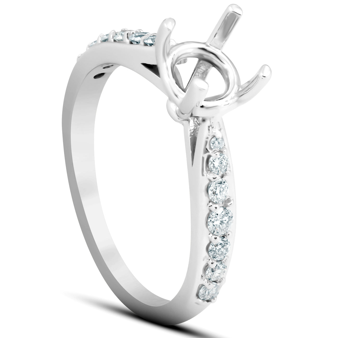 1/3 Ct Diamond Engagement Ring Semi Mount Tapered Setting 14k White Gold by Pompeii3 Rings features 14 round cut diamonds prong set in a solid 14k white gold high polished mounting. The semi-mount is designed to fit a 1 ct diamond or a 6-7mm round stone. This setting offers a sophisticated design, perfect for adding a personal touch with your choice of center stone.