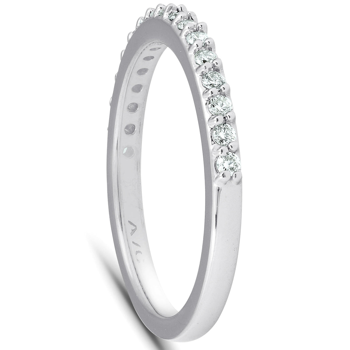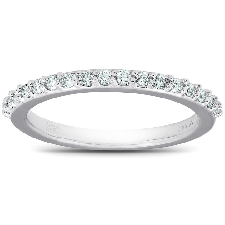1/4 Ct Diamond Ring Matching Engagement Band 17-Stone 14k White Gold by Pompeii3 Rings features 17 round cut diamonds, each prong set in solid 14k white gold. This high-quality band is designed to stack with other rings or match an engagement ring, offering versatility and elegance.