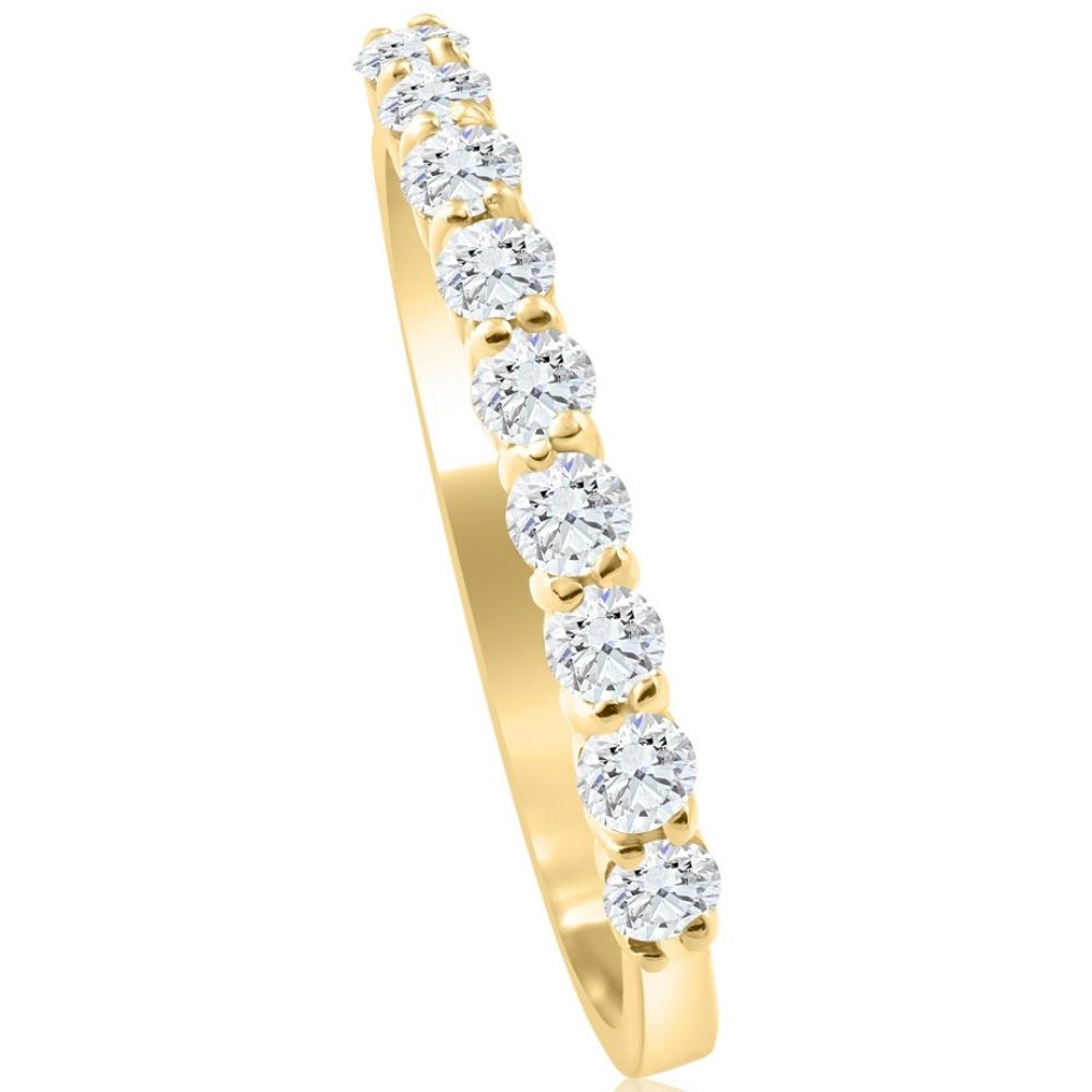 1/2ct Round Diamond Prong Wedding Ring 14k Yellow Gold by Pompeii3 Rings features round brilliant cut diamonds prong set in solid 14k yellow gold. The diamonds go halfway around the band, creating a beautiful and timeless wedding ring.