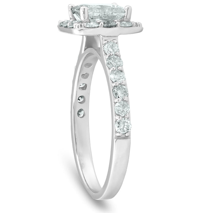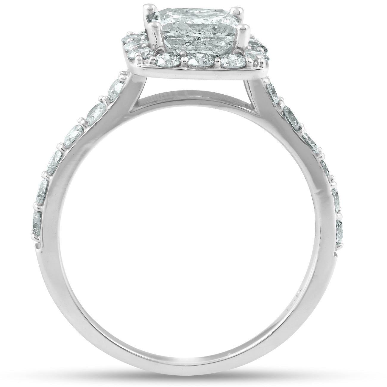 2 Ct Diamond Princess Cut Halo Engagement Ring 14k White Gold