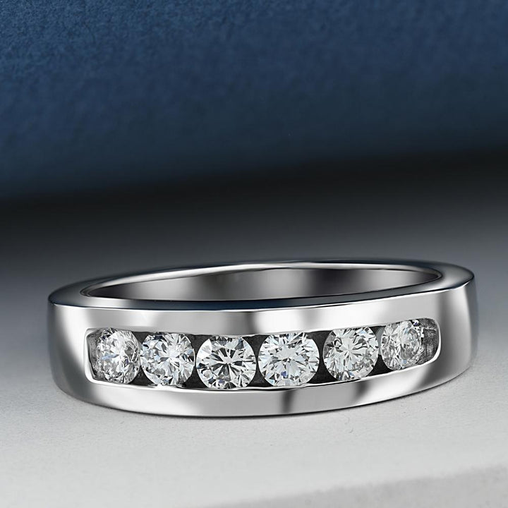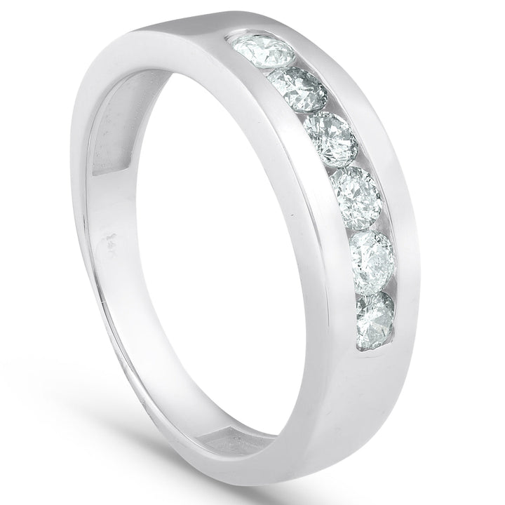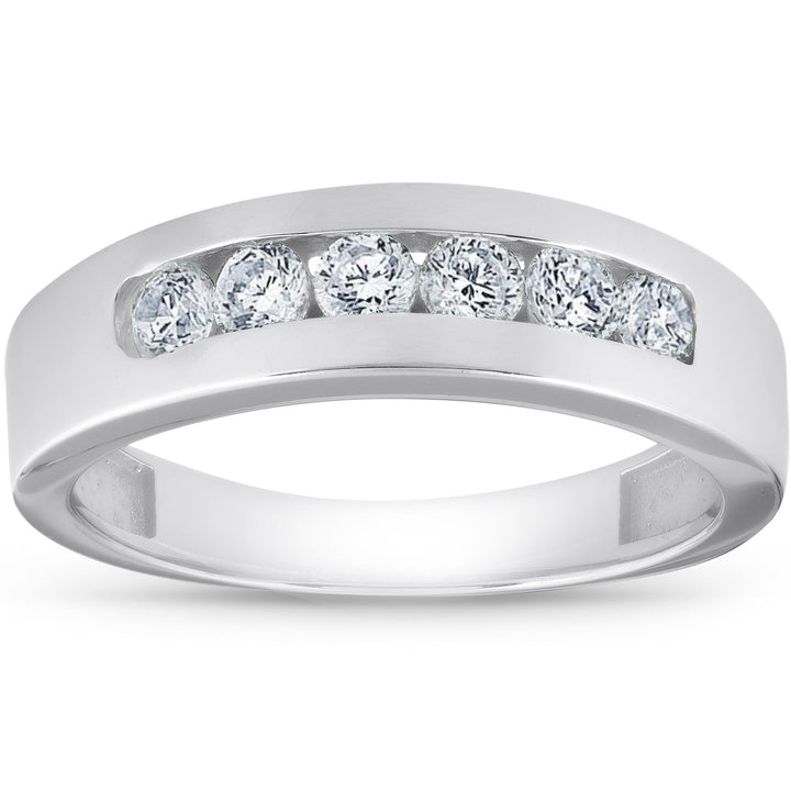 1Ct Diamond Channel Set Polished Wedding Band Mens Ring 14k White Gold Lab Created