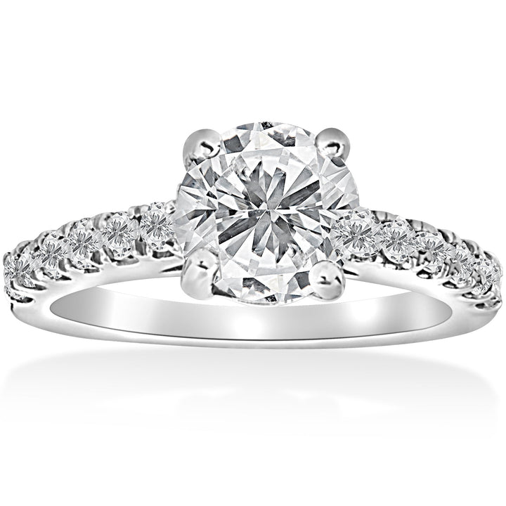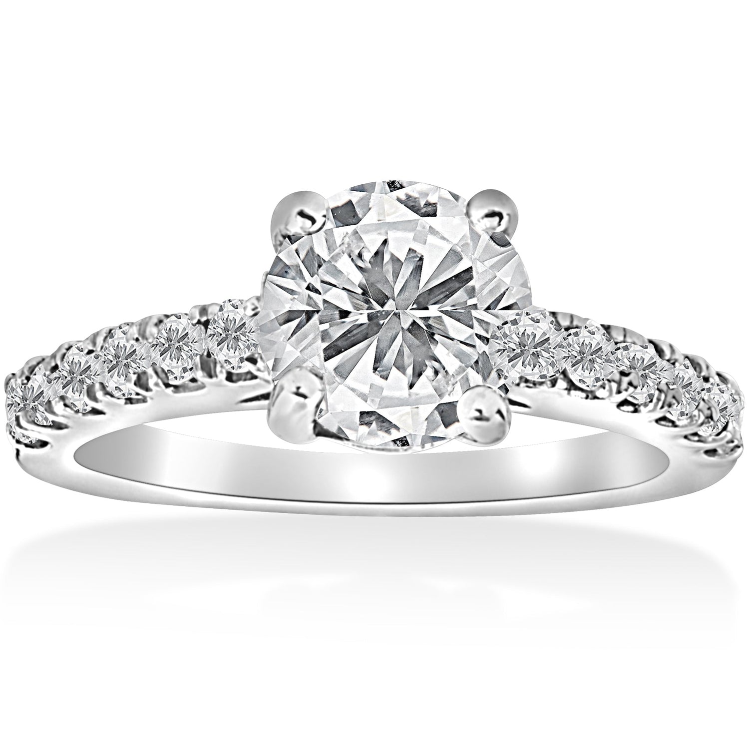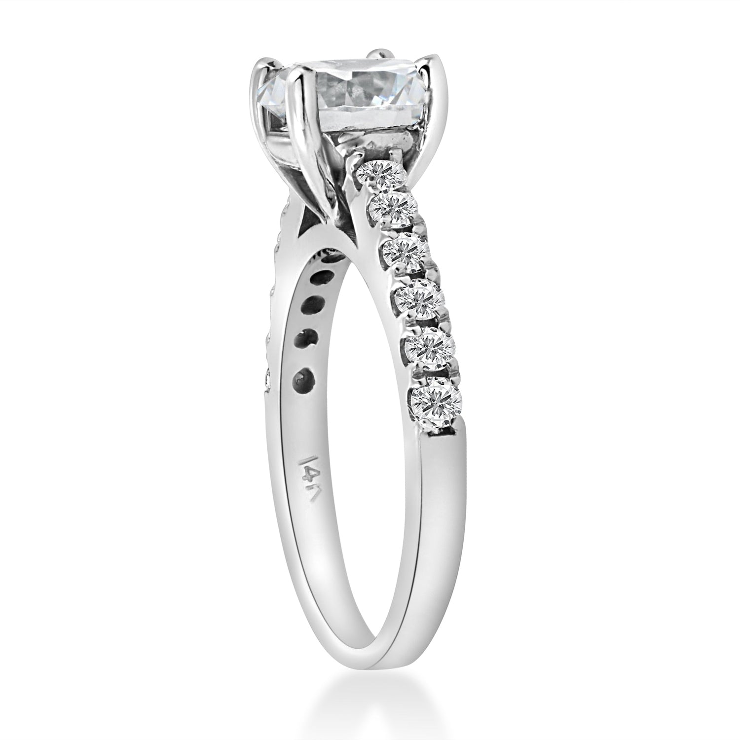 1 1/2 ct Diamond Solitaire With Accents Round Engagement Ring 14k White Gold