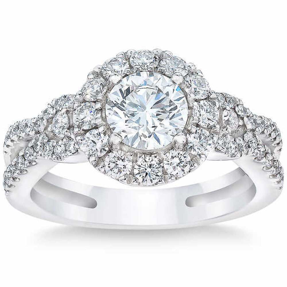 1 1/2 Ct Diamond Halo Intinity Cirss Cross Engagement Ring 10k White Gold