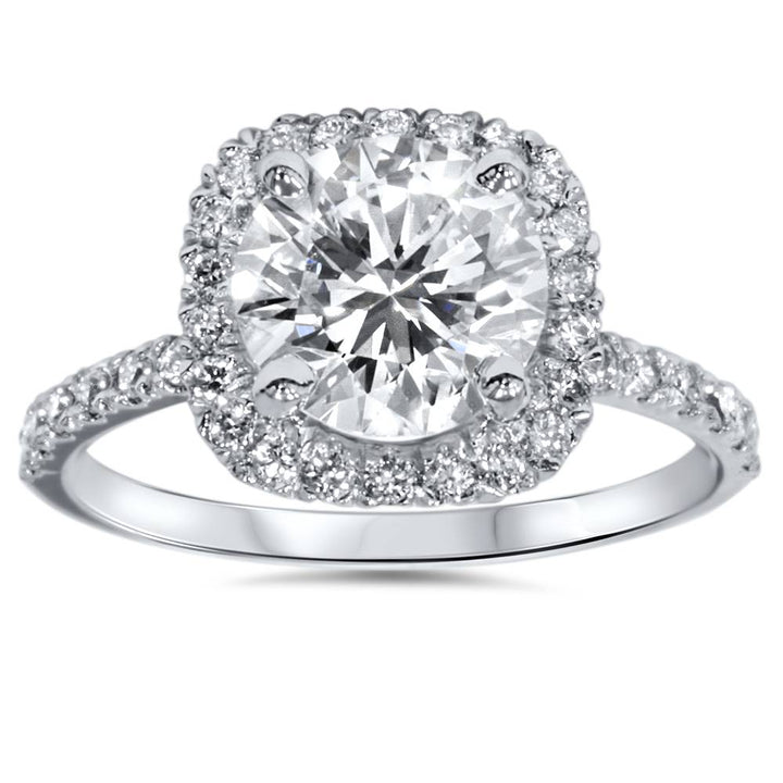 Platinum 1 ct Diamond Engagement Ring Cushion Halo Ring
