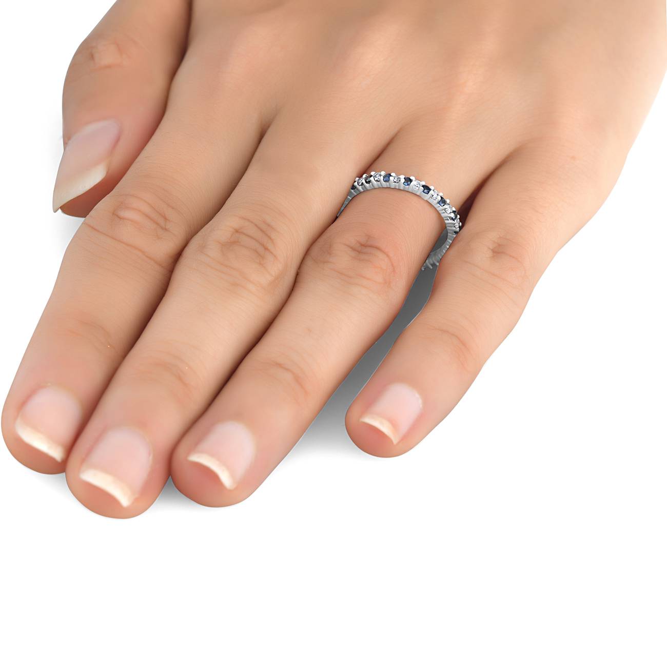 1/2ct Blue Sapphire Diamond Wedding Band Stackable Eternity Ring 14k White Gold